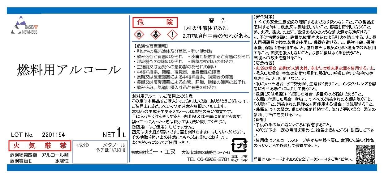 1000ml × 2本 【注ぎ用とんがりキャップ付き】 アルコールストーブ アルコールランプ ビー・エヌ 日本製 バーナー コーヒー沸かし BASIS AND NEWNESS (1000ml×2)
