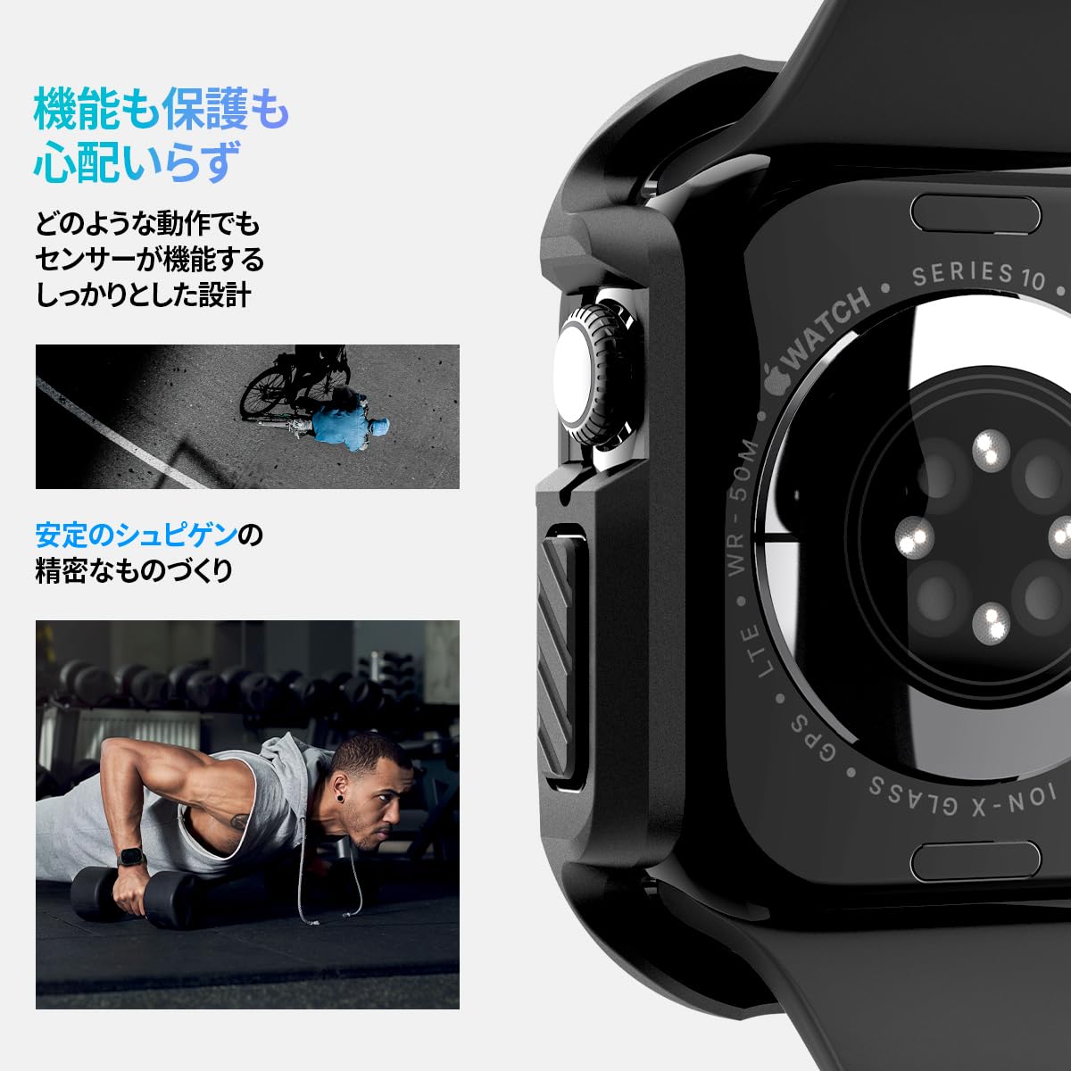 Spigen Apple Watch 10 ケース 46mm AppleWatch10 対応 ガラス 一体型 米軍MIL規格取得 画面保護 耐衝撃 落下 衝撃 吸収 すり傷 防止 保護カバー タフ・アーマー ACS08603 (ブラック)