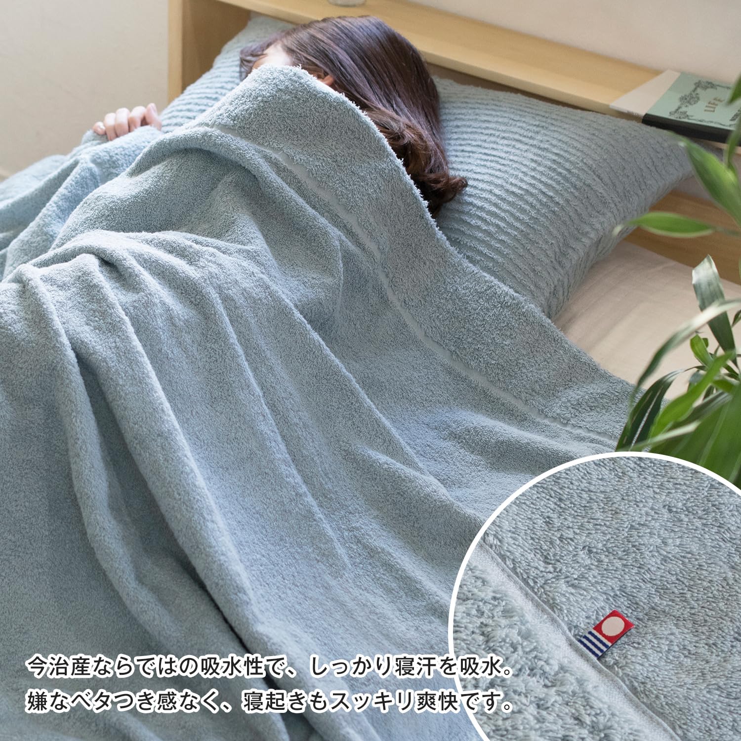 【優れた通気性・吸水性】タオルケットの一番の魅力は快眠を考えた適度な通気性。寝汗も吸収してくれるので嫌なべたつき感がなく寝起きもすっきり爽快です。じめじめする季節や寝苦しい夏も快眠を促します。