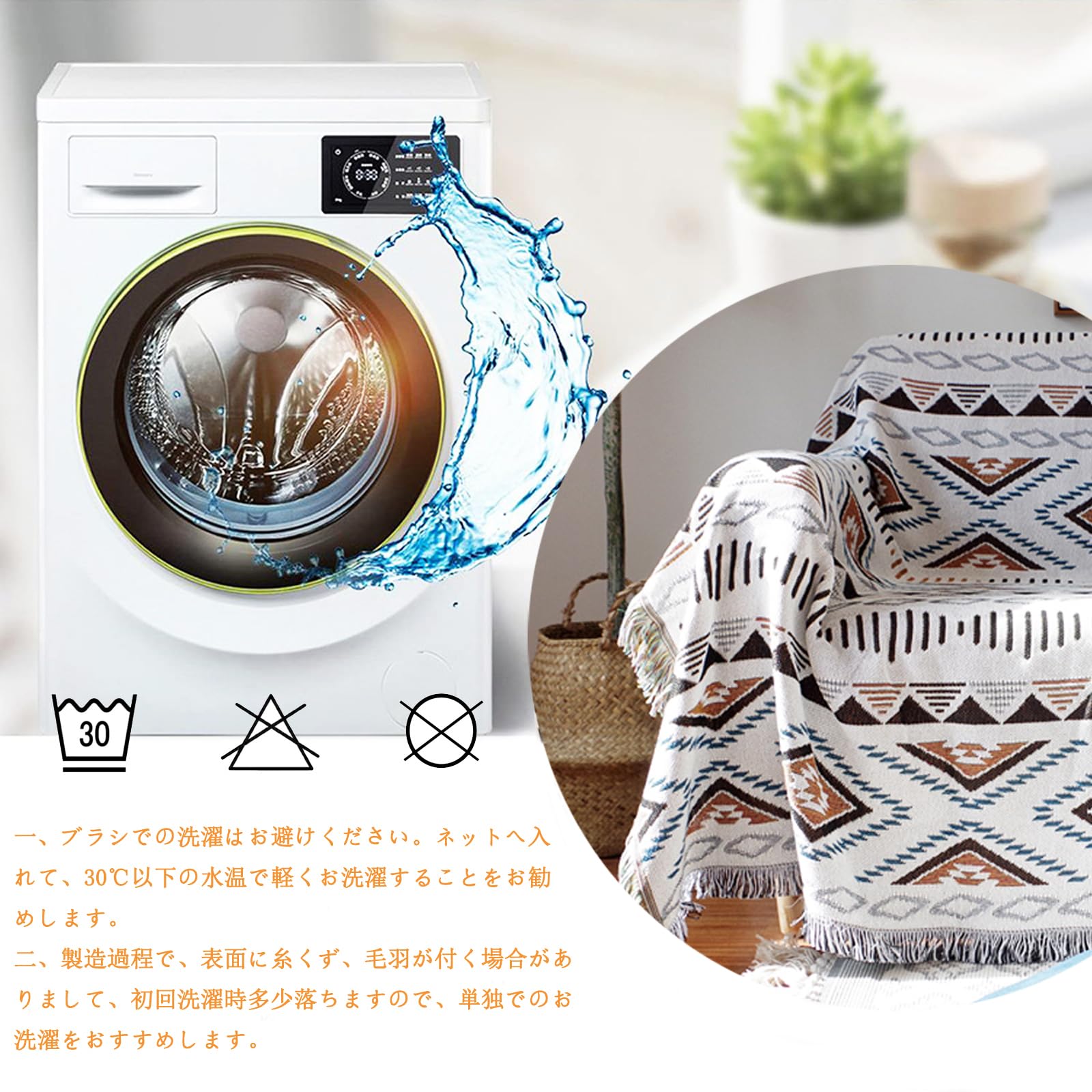 シンプルなデザイン フリンジ付き: 幅広い年齢グループに人気の北欧風、高級感UP。お部屋内のインタリアと合いやすく、使うと室内の雰囲気も明るくなりますぞ, 両面が違っていますが, どちらの面も正常に利用できます。飽きたときはベッドにかけたり多目的でつかえます。