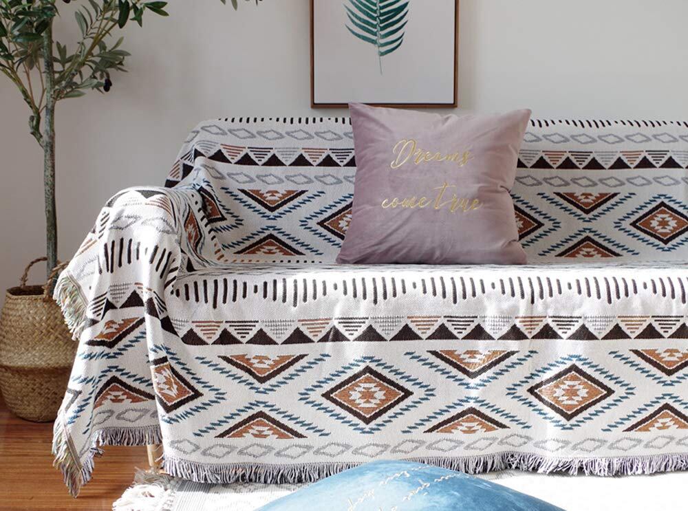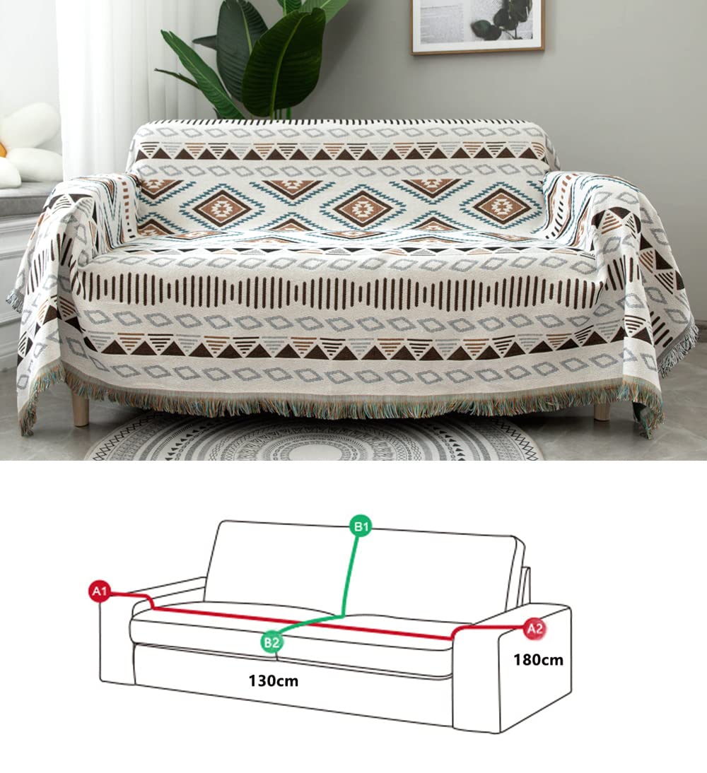 マルチカバー 北欧風 ソファカバー 長方形 130*180cm ブランケットフリンジ付き 綿 1 2人掛け ソファーかばー カウチ テーブルクロス リバーシブル 犬猫傷 防止 保護カバー 四季通用 大判 洗える