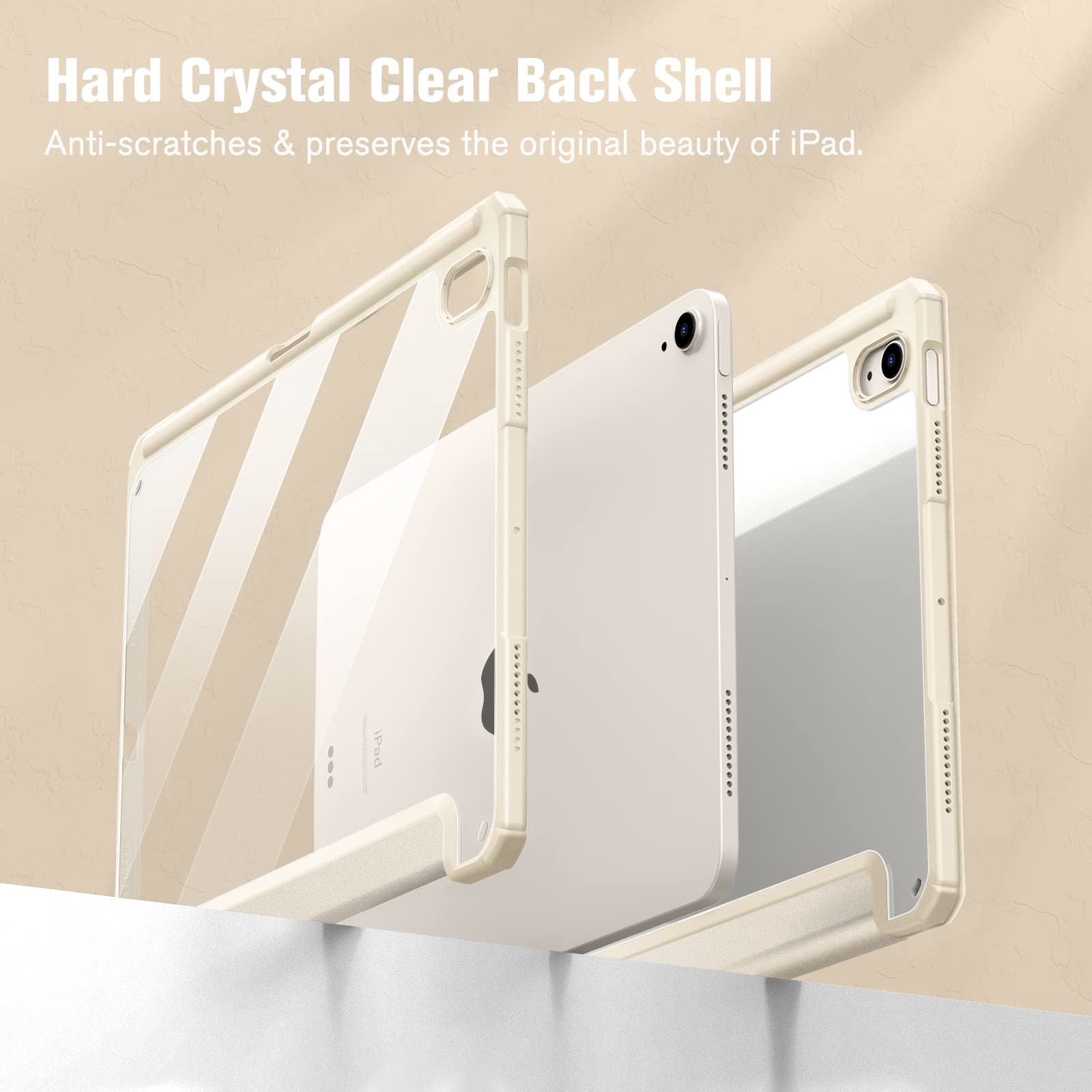 Fintie iPad Air 11インチ ケース M3 (2025 第7世代) / M2 (2024 第6世代) / Air 5/4 ケース 2022/2020 10.9 インチ 透明バックカバー Apple Pencil 収納可能 ワイヤレス充電対応 三つ折スタンド スリープ機能 軽量 薄型 傷つけ防止 PU合成レザー TPU(スターライト)
