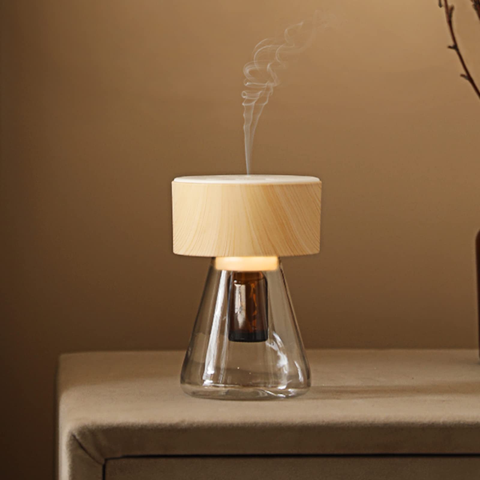Minidiva アロマランプ・ナイトライト アロマディフューザー 水なし ネブライザー式 直立スタンド噴霧式 低騒音稼働 タイマー機能 USB-Type C充電 コードレス・コンパクト可能 DIYデザイン可能 間接照明 LEDライト インテリアおしゃれ お手入れ簡単 ベッドサイド・卓上使用 母の日 祝日・誕生日プレゼント Twilight(木目色)