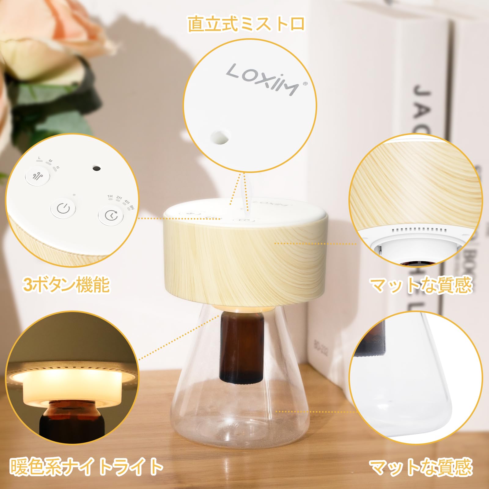 アロマオイル適用:10ml/15mlアロマオイル瓶は直接に取り付けてでき、様々なエッセンシャルオイルの種類も対応できます。製品の体験効果をアップされるため、専用アロマオイルと合わせて使用してください。(本製品はエッセンシャルオイルは含まれません。)