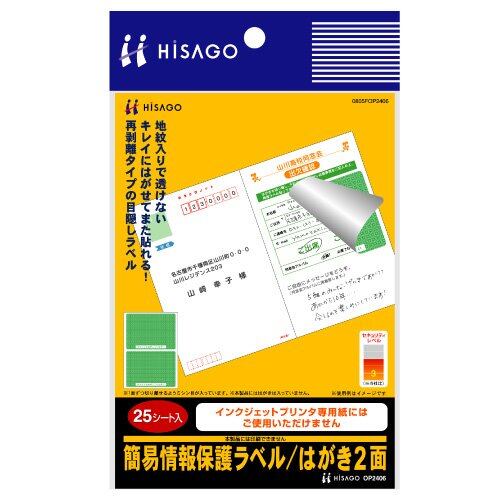 ヒサゴ 簡易情報保護ラベル/はがき2面 (25シート入り) OP2406