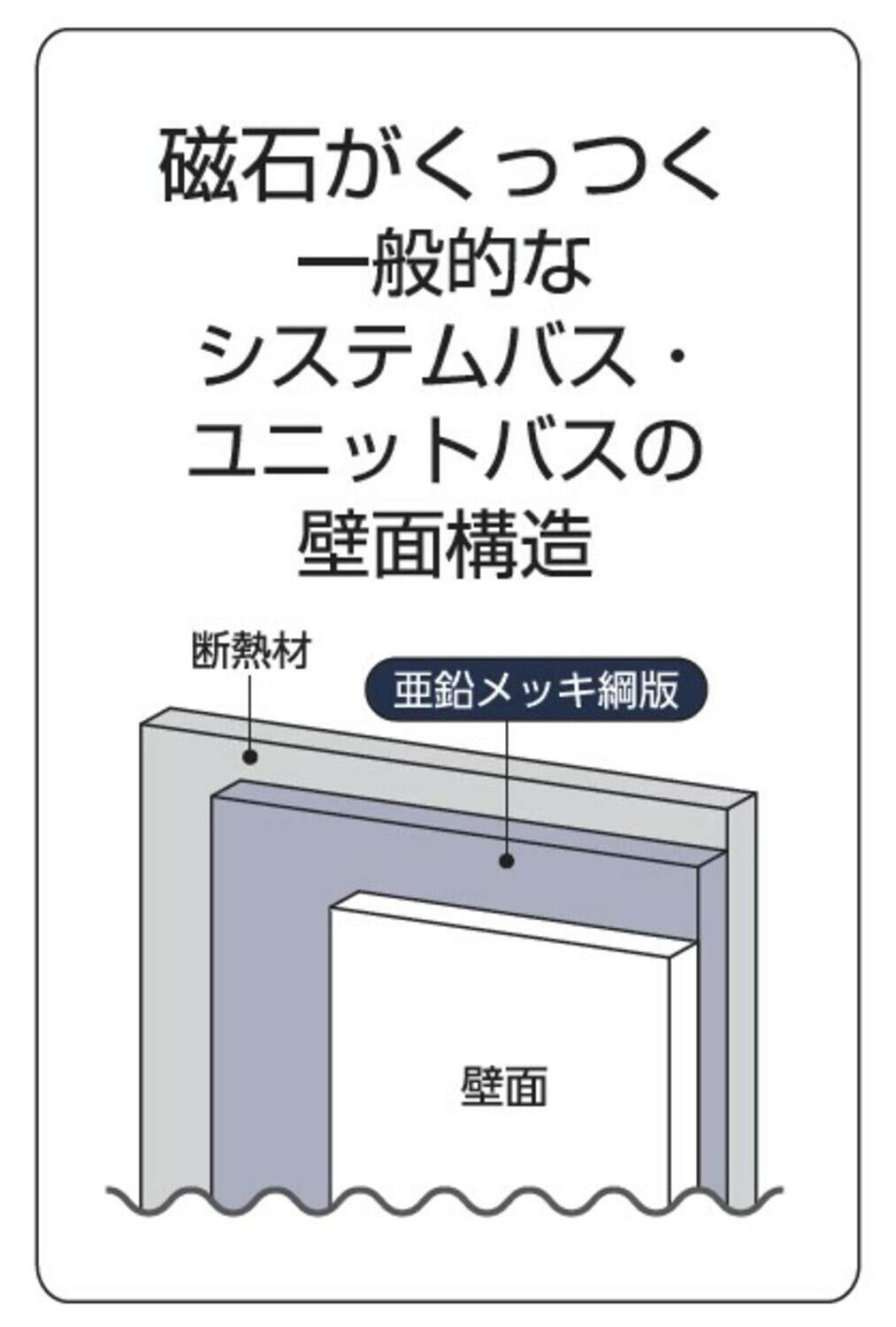《磁石がくっつく一般的なシステムバス・ユニットバスの壁面構造》