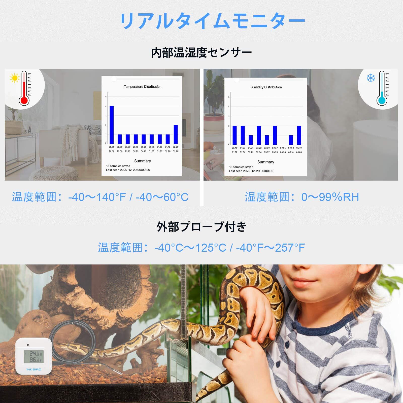 Inkbird Bluetooth温湿度計 温度計 湿度計 アラーム付き スマートセンサー グラフ表示 データロガー データのエクスポート iOS/Androidアプリで温度管理 爬虫類 温室 ヒュミドール ワインセラー IBS-TH2 PLUS(温度プローブ付き)