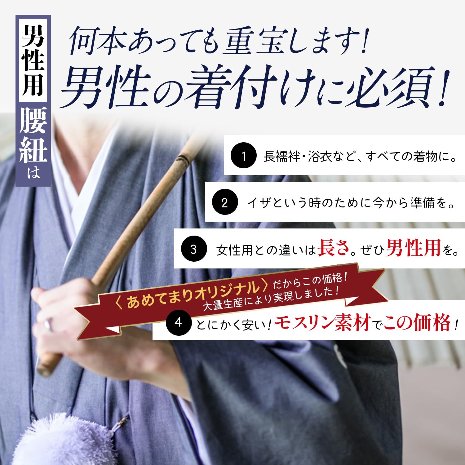 [あめてまり] 腰紐 男性用 2本セット モスリン 濃紺 長尺 幅広 ロング 腰ひも 着付け小物 和装小物 男女兼用 和装 和服 長襦袢 浴衣 必需品 男物 紳士 ふくよかな女性にも 濃色 たすき 襷 通年用