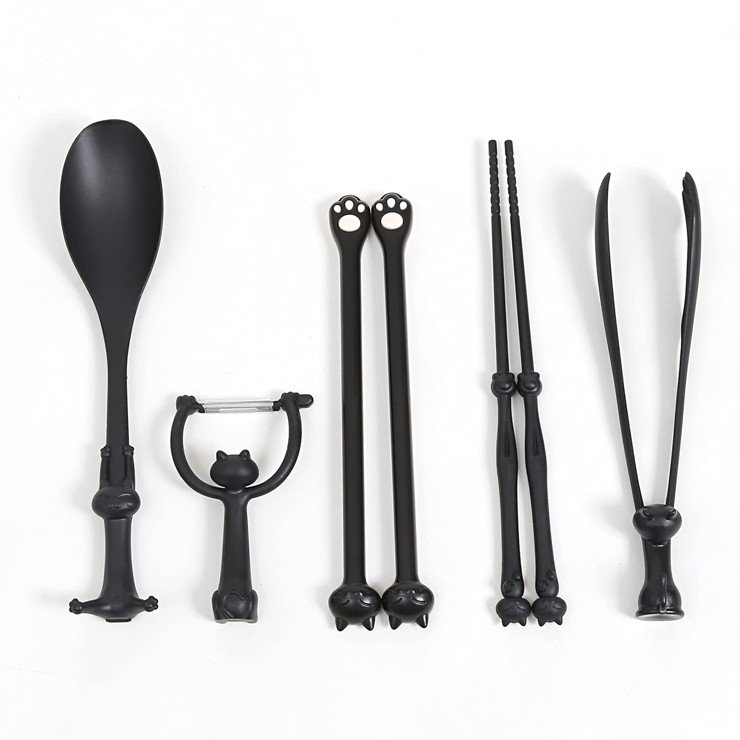 【商品仕様】:カラー/ブラック、内容/6個(マルチスプーン×1・チョップスティック×1・トング×1・クリップ×2・ピーラー×1)