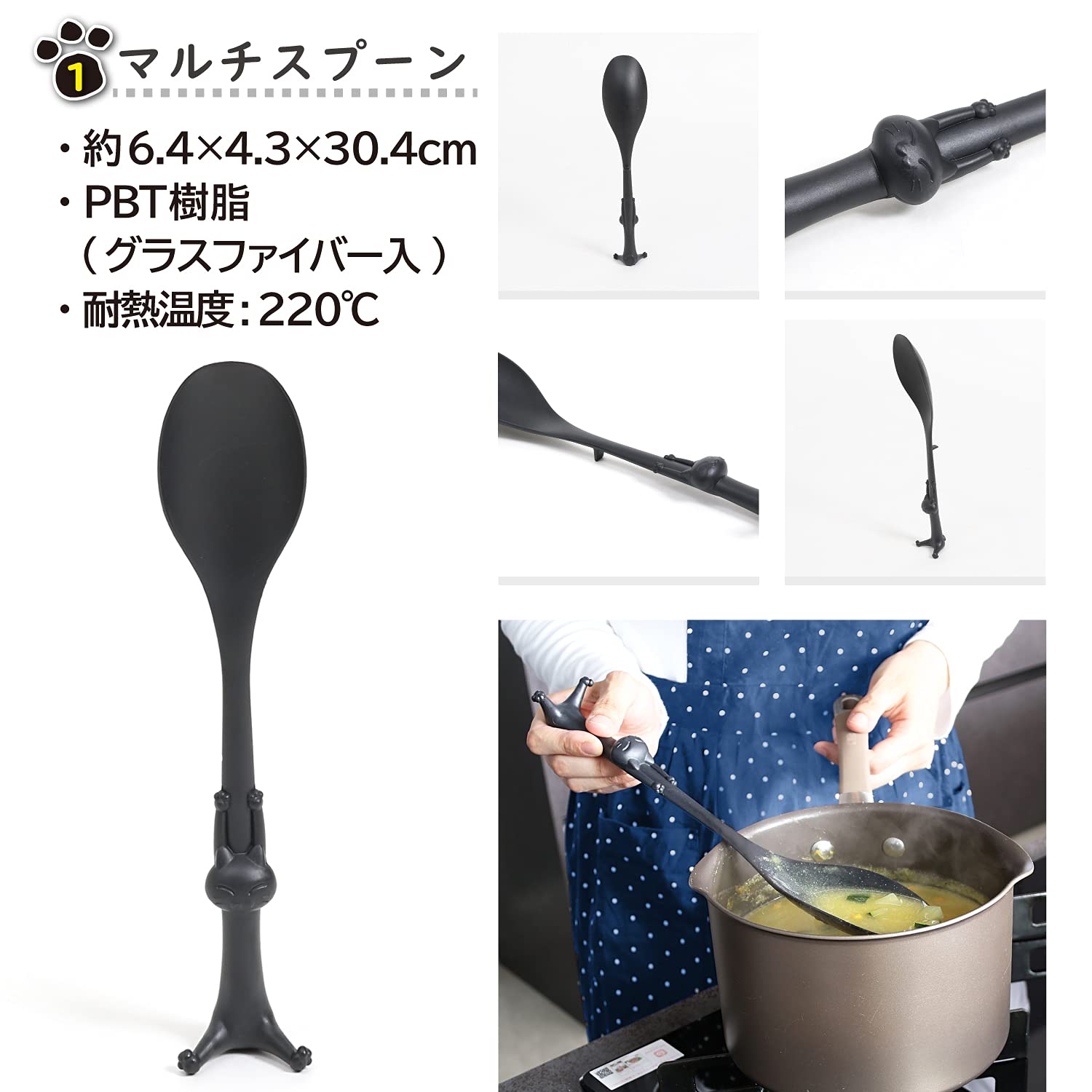 【黒ネコのキッチンツールセット】:見ているだけでかわいいユニークなポーズを取るネコ達のお料理ツール。