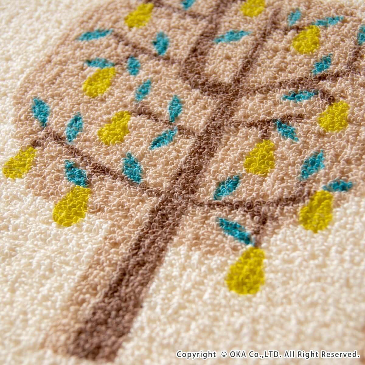 サイズ:約45cm×120cm | パターン(種類):オーチャード 顔料プリントキッチンマットにナチュラルテイストのキッチンマットが仲間入りしました。ナチュラルな木々が並んだかわいいデザイン。マットは、シャツなどを製造する時に出るハギレを再利用し、糸にした再生糸で出来た生地に柄をプリントしています。環境にも優しく、ナチュラルな風合いが特徴のマットに仕上がっています。 毛羽立ちが少なくお手入れも簡単です。裏面はすべり止め加工がされています。へたりにくいしっかりとした縫製、丸くカットした角はマットが浮き上がりにくいようになっており、足元がひっかかりにくく安心です。※床暖房の長時間の連続使用や高温でのご使用は避けてください