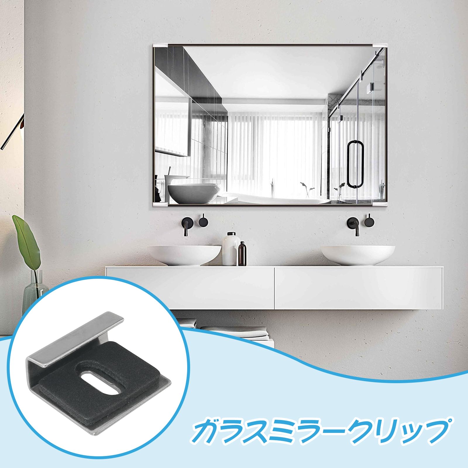 鏡 取り付け用金具 4個セット ステンレス製 6-7mm厚鏡用 交換用鏡対応 鏡取り付けフック 鏡を壁に止める金具 鏡止め金具 取り付け簡単 化粧鏡用止め金具