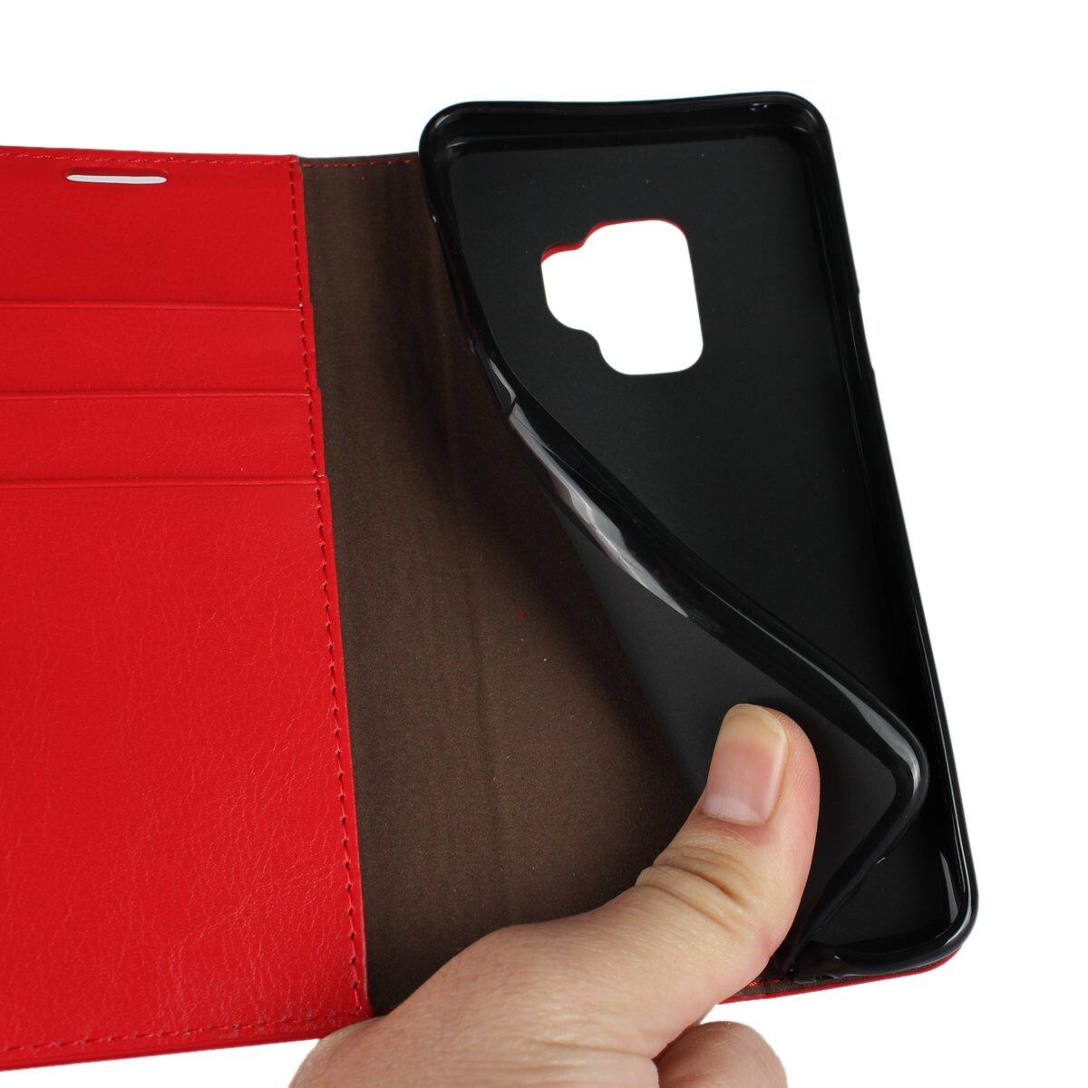 Galaxy S9 ケース 手帳型 Galaxy S9 ケース 手帳型 SC-02K SCV38 ケースケース サムスン ギャラクシー s9 手帳 ケース ギャラクシーS9 カバー 財布ケース スマホケース 手帳型_iCoverCase_ 光沢加工 牛革 シンプル レトロ 携帯 カバー カードポケット スタンド機能 財布型 カバー マグネット無し レッド