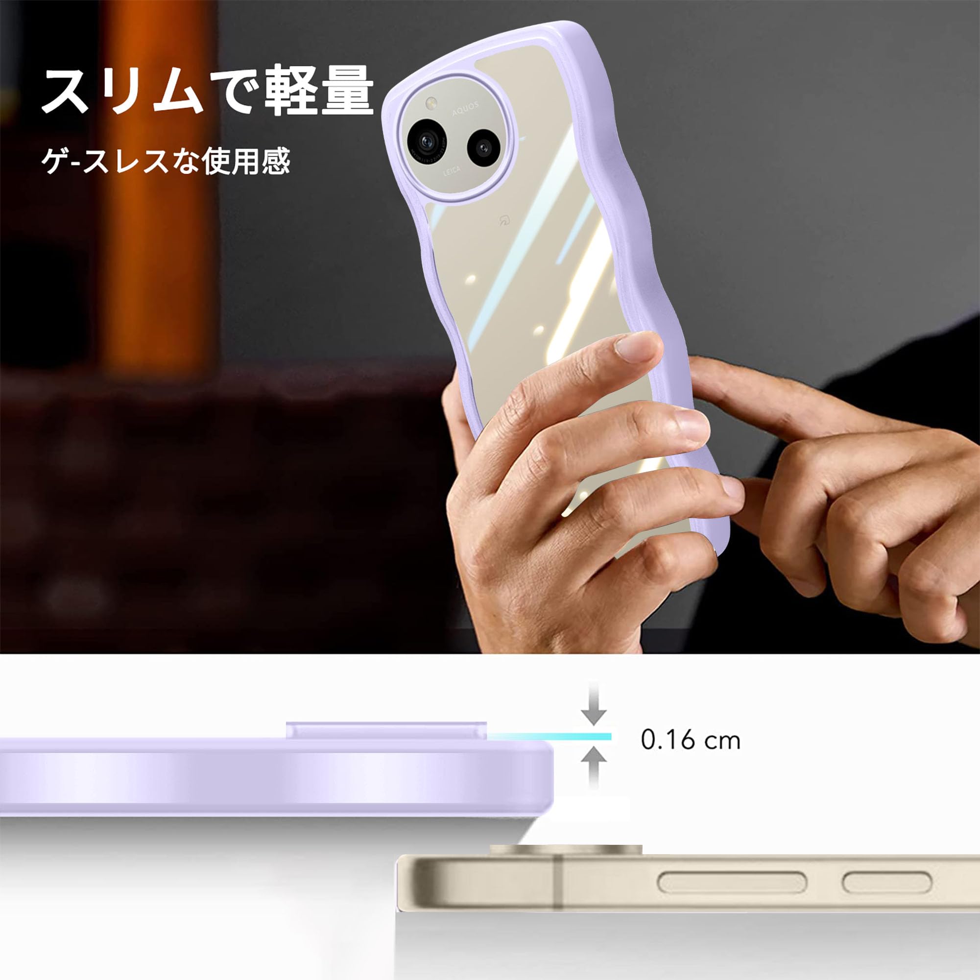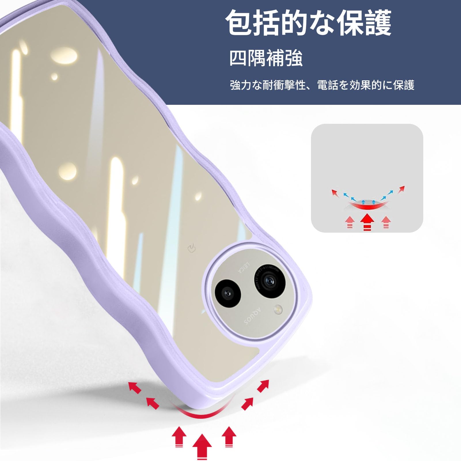 AQUOS R9 かわいい ケース クリア 波状フレーム うねうね 耐衝撃 AQUOS R9 SH-51E スマホケース 滑り止め 人気 可愛い 女性用 女子向け アクオス R9 カバー 落下防止 ワイヤレス充電対応 (パープル)
