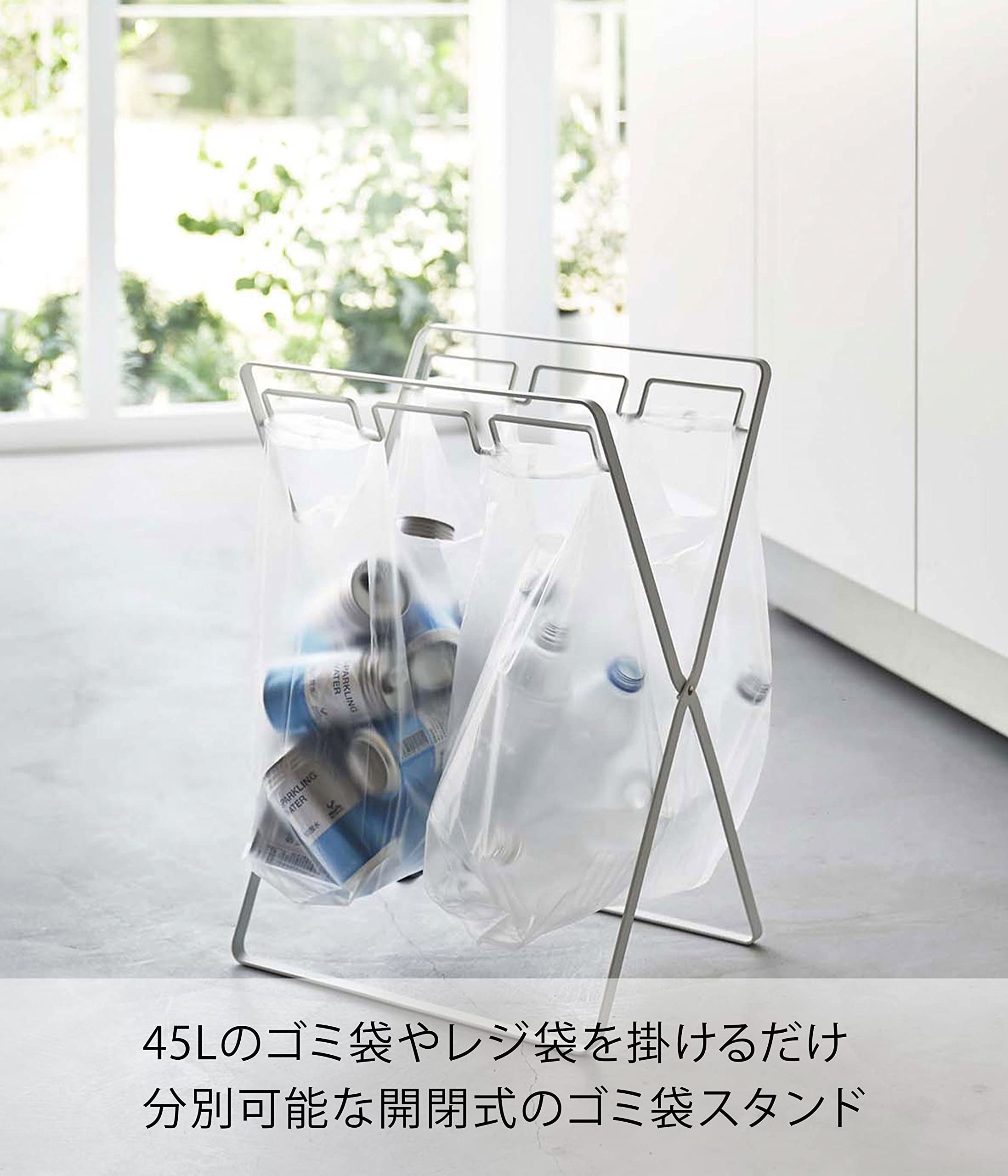 45Lのゴミ袋やレジ袋をそのまま掛けられ、分別も可能なゴミ袋スタンド!