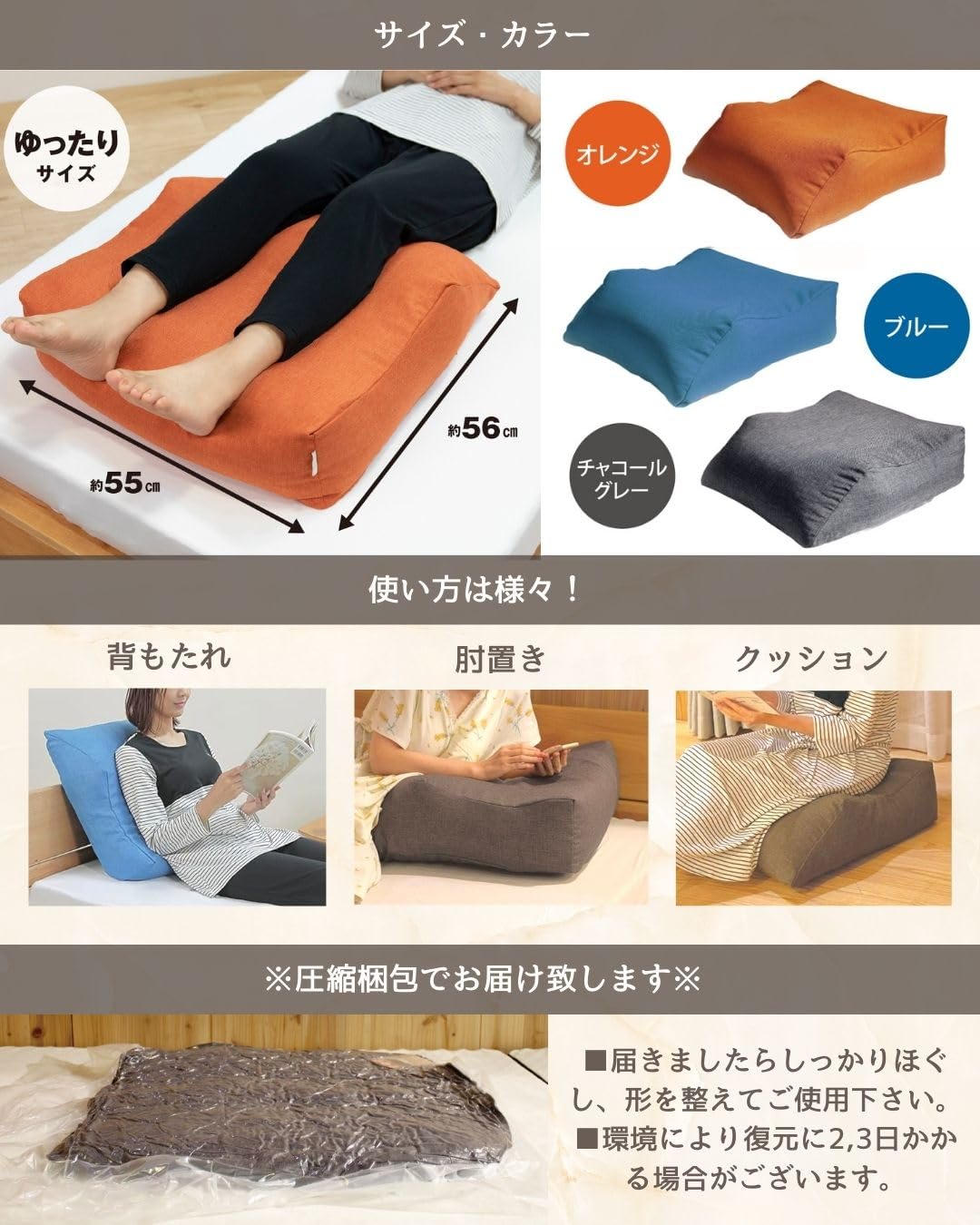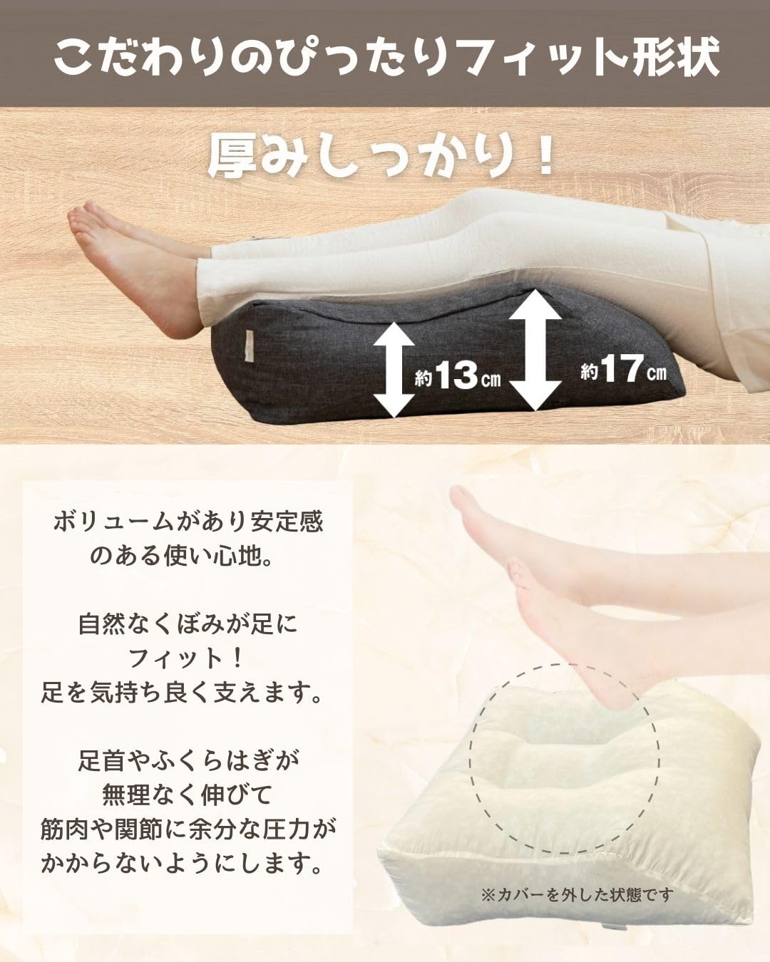 厚みもサイズもボリューム満点の脚まくら。疲れ、むくみ対策におすすめ。ひざ裏からふくらはぎ、足先まで優しくフィットしてスッキリ足上げできます。 脚まくらとしてだけではなく、腰当てや背当て、座布団など色々活躍します。