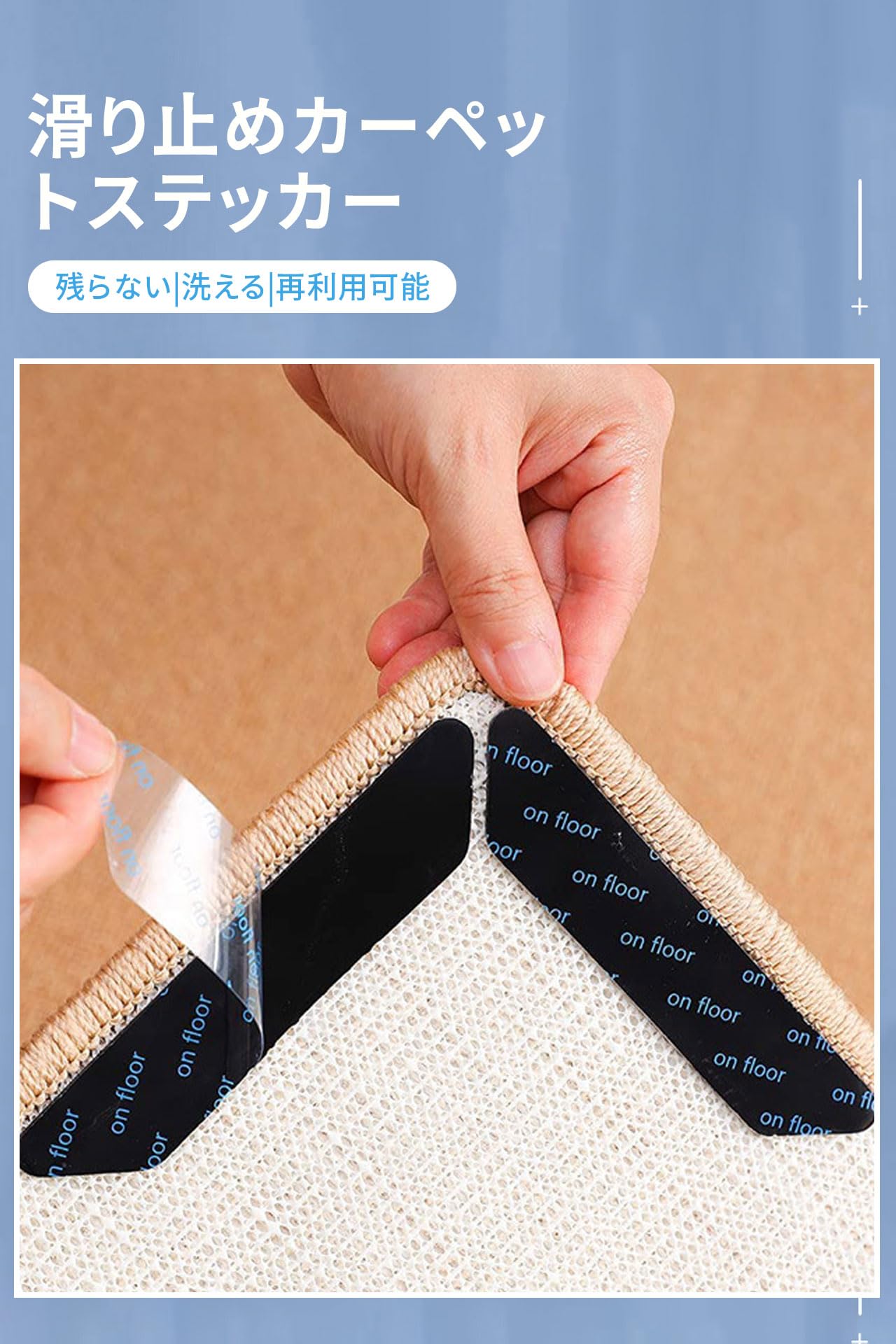 滑り止めシート 16枚 超強力 カーペット 滑り止めシート ネットプラスソリッド 跡が残らない 洗濯後粘度が回復 カーペットパッド滑り止めテープ カーペット マット ラグ ソファーなど様々なものに対応(三角形90*90mm x 8 + 台形30*180mm x 8)