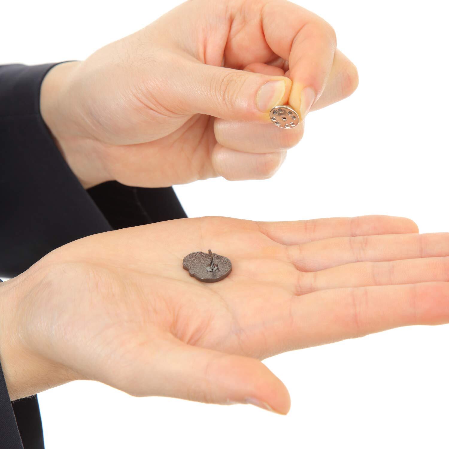 バタフライクラッチ仕様:留め具はしっかりと固定できるバタフライクラッチ仕様で、バッグやジャケット、帽子に装着しても安定感があります。