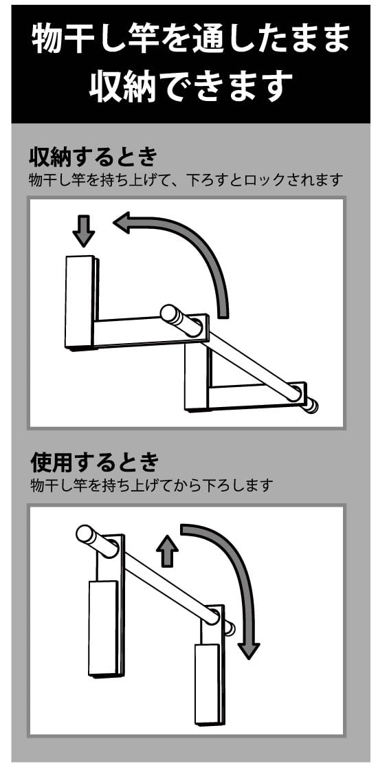 安全荷重:10kg(2個使用) ブラケット(2個入)のみの商品。物干し竿、ハンガー等は付属しておりません。