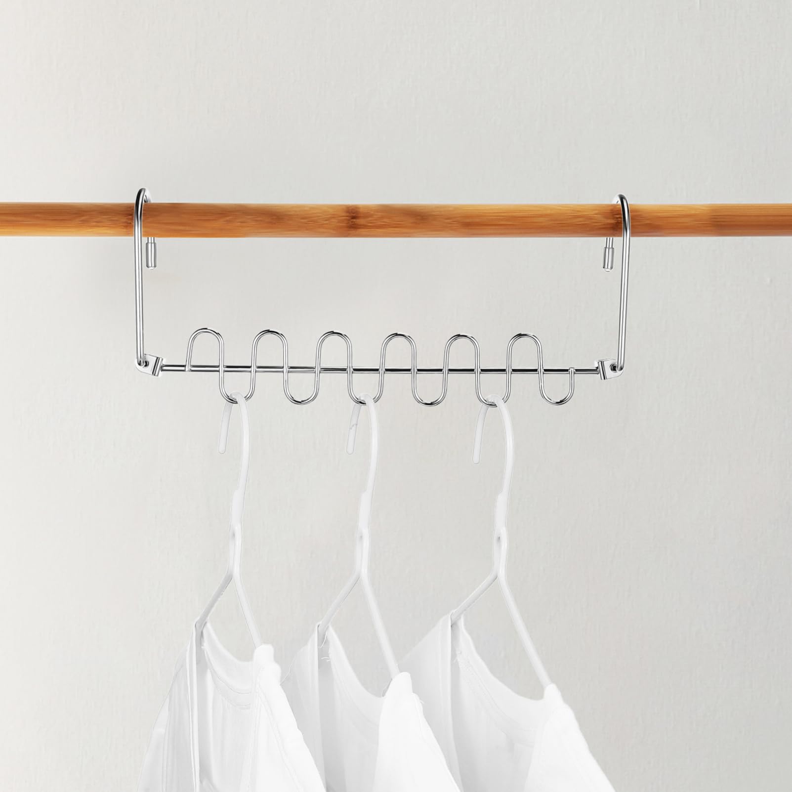 【驚きの収納力!12連ハンガーでスペースを活用】:1つのハンガーに12着も掛けられる連結ハンガー。ワードローブのスペースを活用し、衣類をスッキリ収納できます。