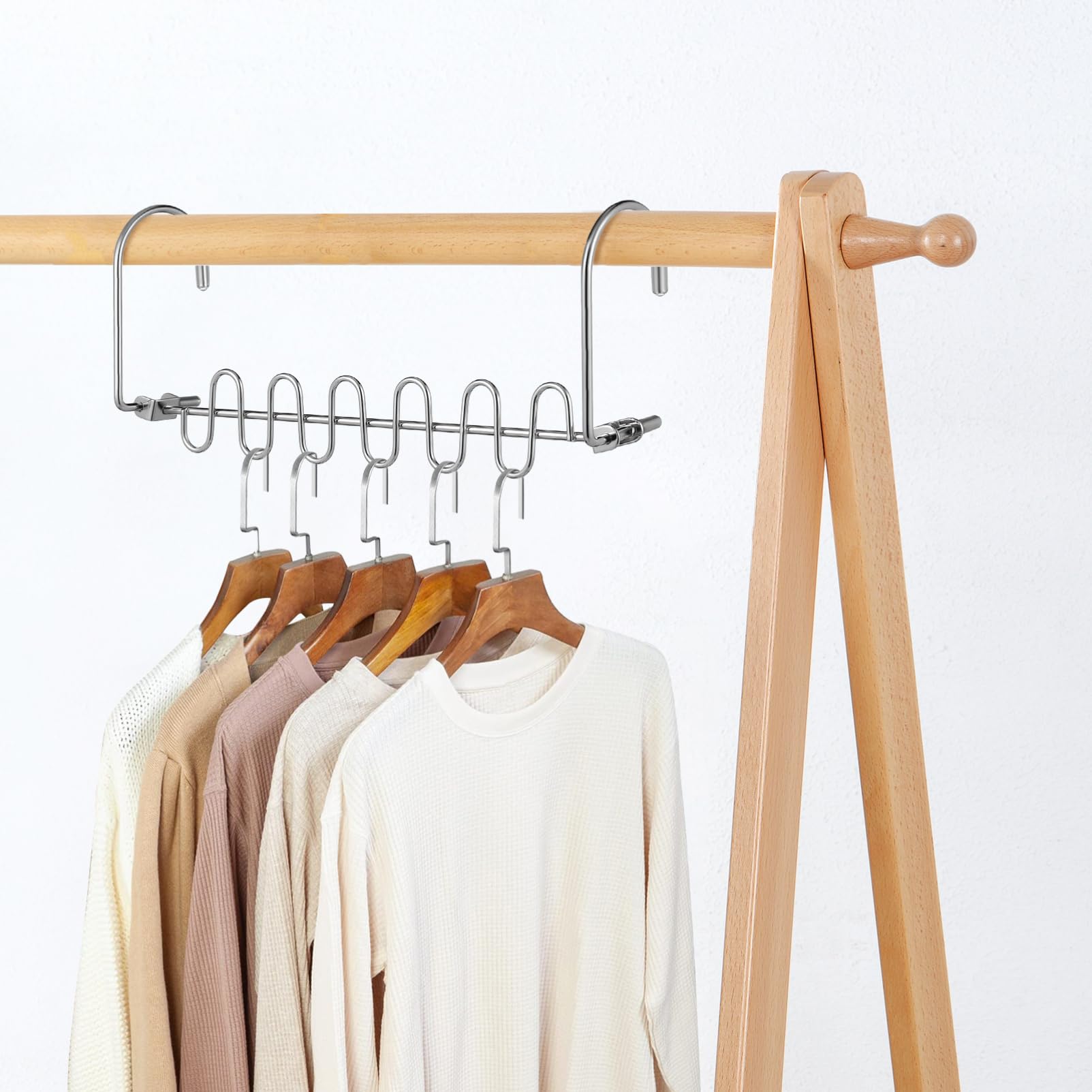 OUNONA 省スペースハンガー 洗濯物干し 連結ハンガー ステンレス ハンガー 3個 12連 縦横両用 強力 滑り止め 吊り下げ 丈夫 衣類収納ハンガー 連結ハンガー コート パンツ ズボン 収納ハンガー 旅行 シルバー | geisha Cat*