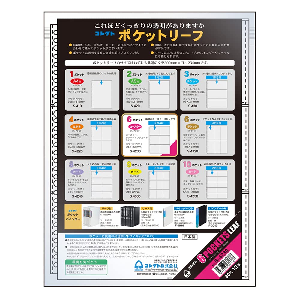 コレクト リフィル 透明 ポケットリーフ A4 6ポケット 30穴 2列3段 10枚 S-4230