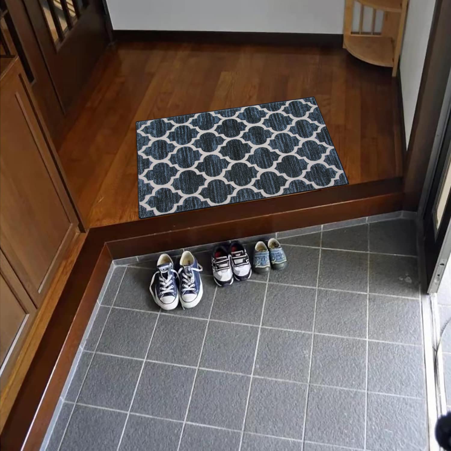 HAOCOO 玄関マット モロッコ柄 北欧風 室内 50х80cm 小さい ラグ おしゃれ 洗える 長方形 ふわふわ 滑り止め 低反発 防音 ラグマット 屋外 泥落とし アンティーク オールシーズン適用 抗菌防臭 軽量 ネイビー
