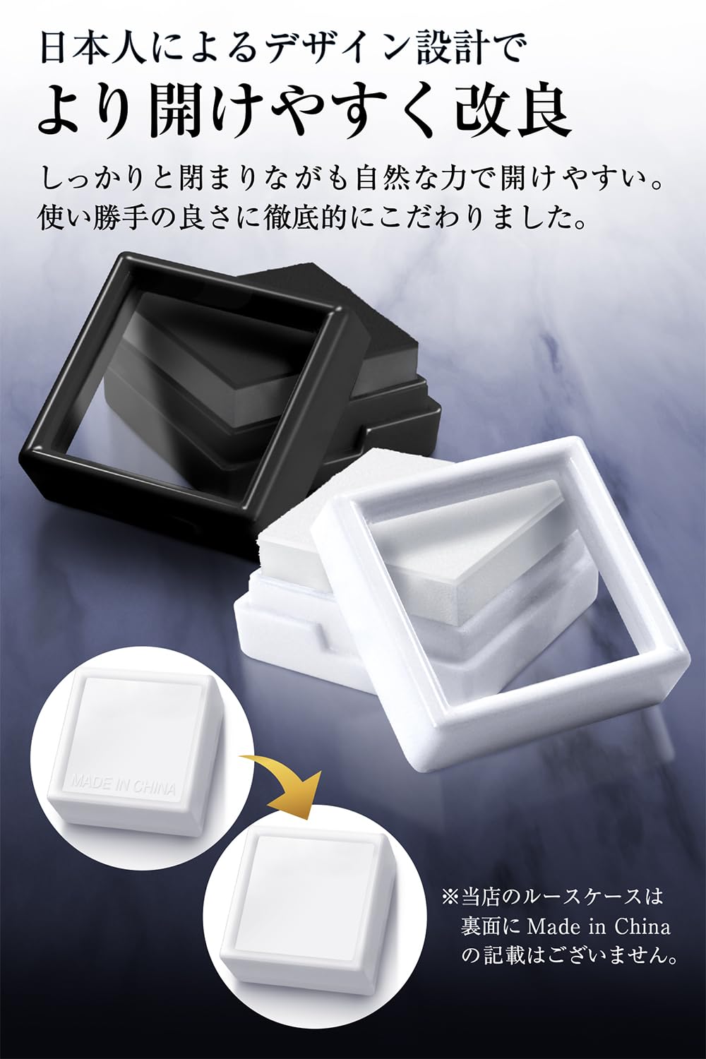 開けやすく改良 : 手でも開けやすく改良いたしました。ルースケース本来の開け方である、ピンセットの柄等を使用する開け方の説明書も同封しております。