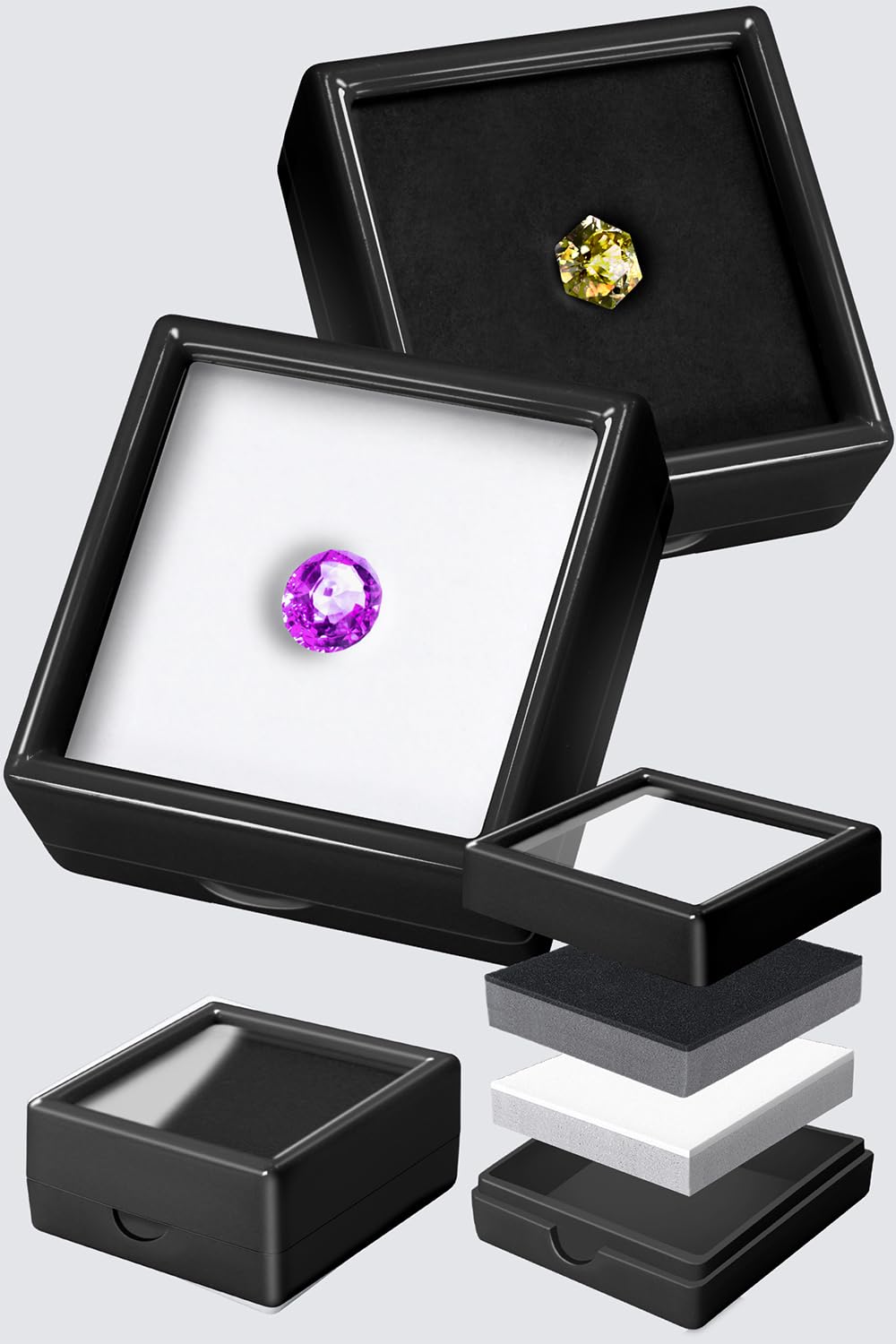 ETLIFE ルースケース 4cm 黒 10個【 白黒 2段クッション 】 プラケース 天然石 宝石箱 裸石 宝石 ルース 収納 ジュエリーケース ディスプレイケース 小物入れ 標本箱 (10個セット) | geisha Cat*