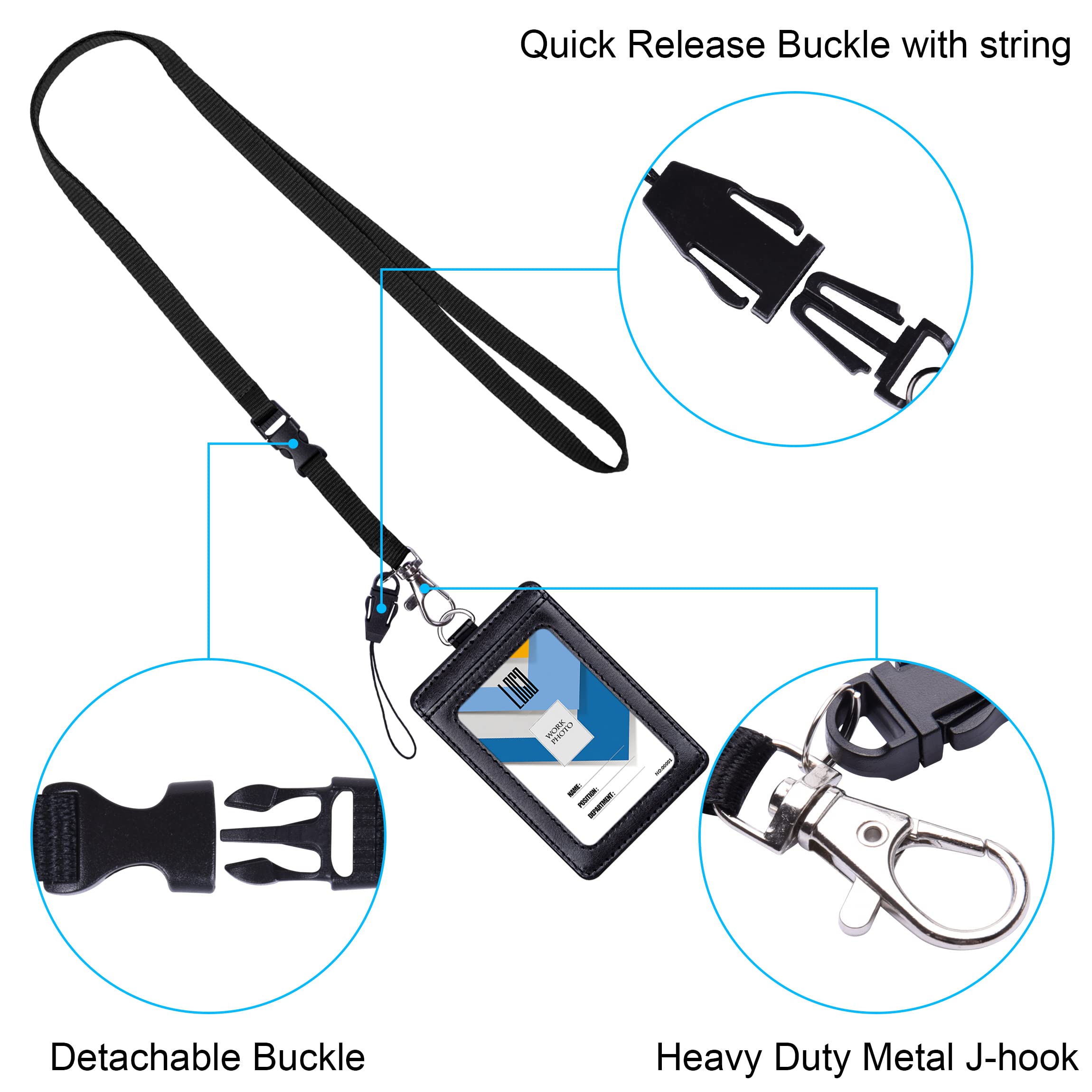 IDカードホルダー 縦 Wisdompro PU革 両面 ネックストラップ付き 社員証・名札・定期入れ・パスケース ブラック