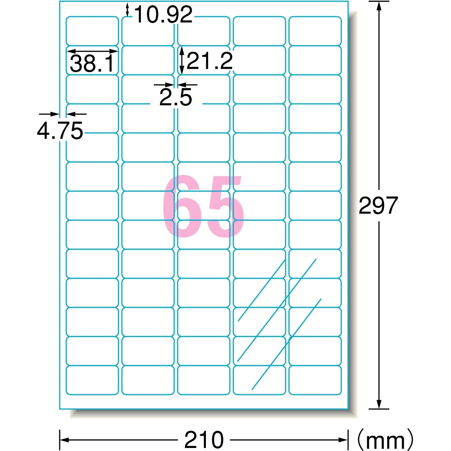 ラベルサイズ:38.1mm×21.2mm(5列×13段)