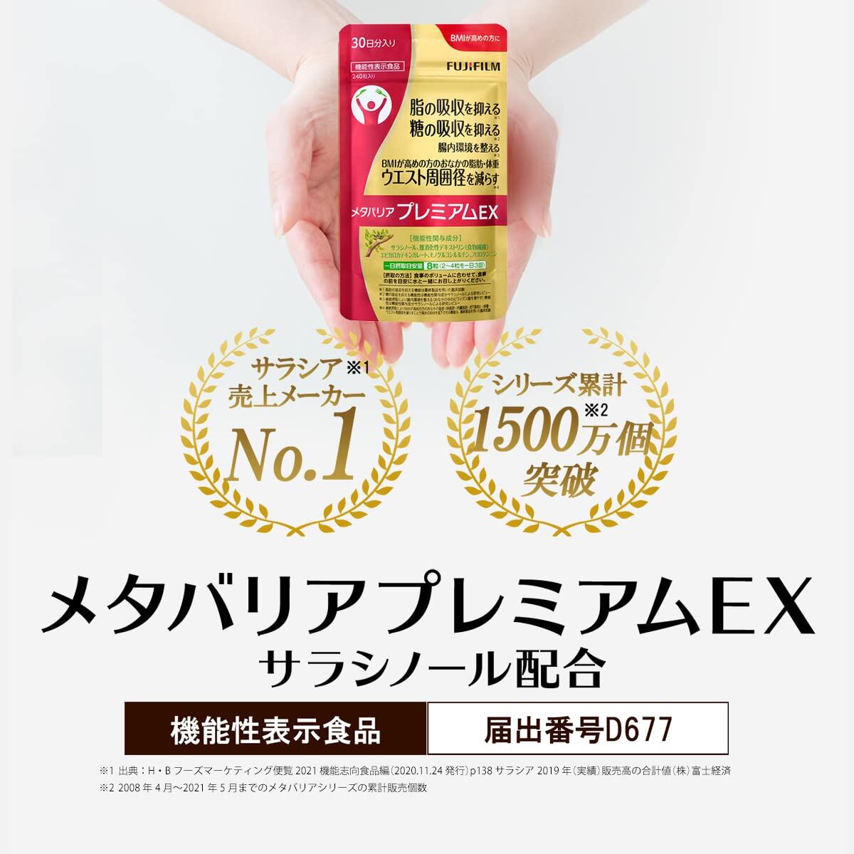 富士フイルム メタバリア プレミアムEX (90日分 720粒) 【公式店限定 増量パウチ付セット】 サラシア サプリメント [機能性表示食品]