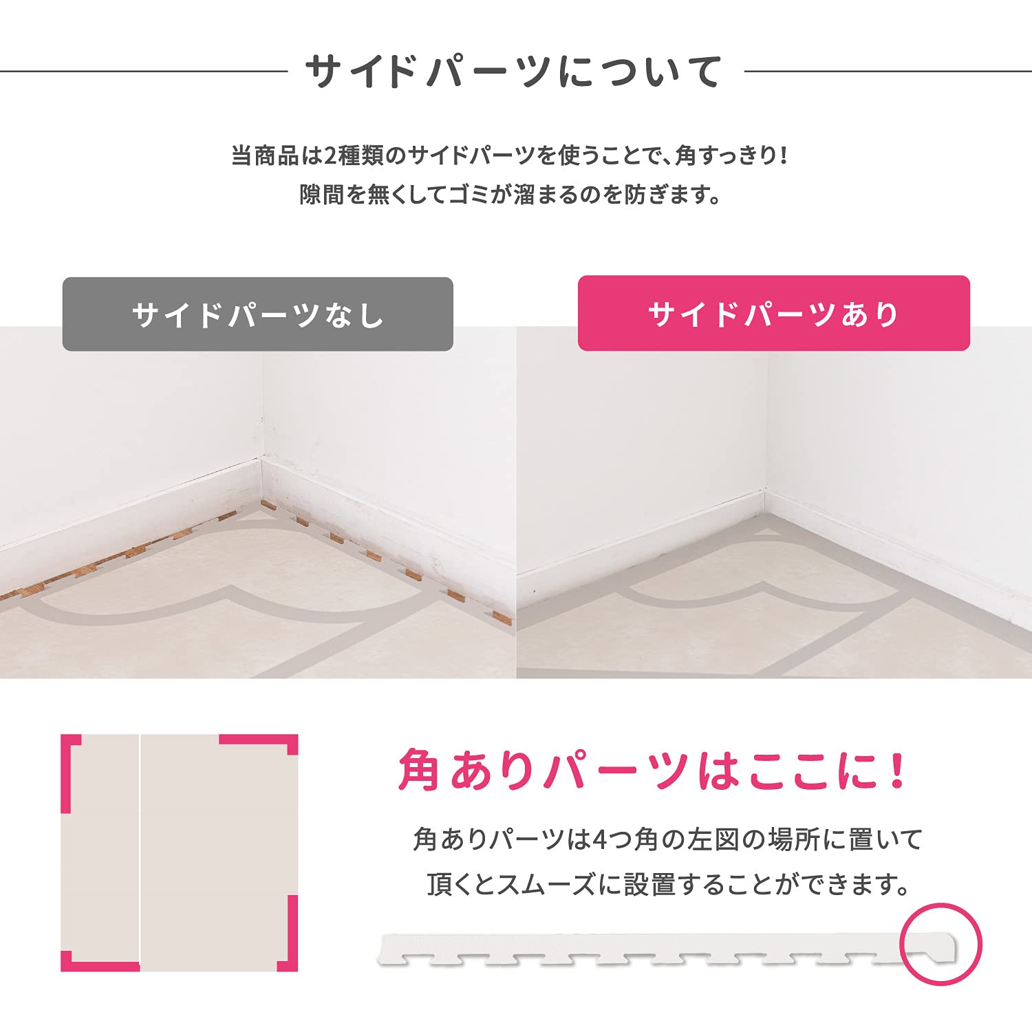 萩原 ジョイントマット アイボリー 約60×60cm 9枚組 サイドパーツ付き 「キュロス」 レトロデザイン 水洗いできる カットOK