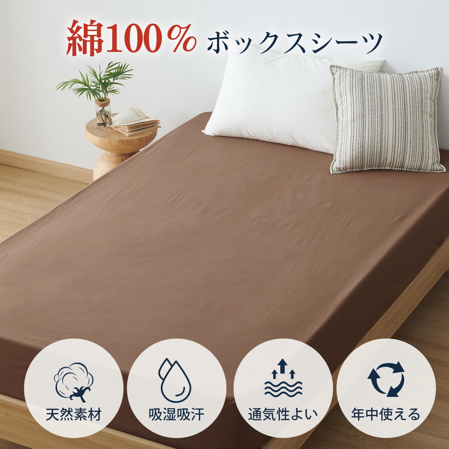 クモリ(Kumori) ボックスシーツ 綿100% 毛玉なし シングル 素肌にやさしい 吸水速乾 耐久性が高い 洗える オールシーズン ベッド/マットレス/敷き布団対応 マットレスカバー ベッドカバー ベッドシーツ(シングル・100X200cm ブラウン)