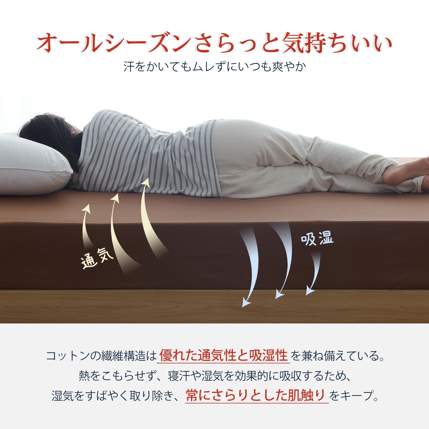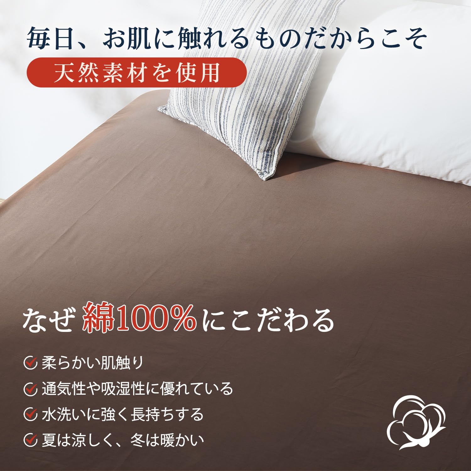 【オールシーズン対応】水に強くて耐久性が高いので、衛生的に長く愛用できます。保湿性が高かく静電気が起きづらいことで、どんな季節でも快適な寝心地になります。