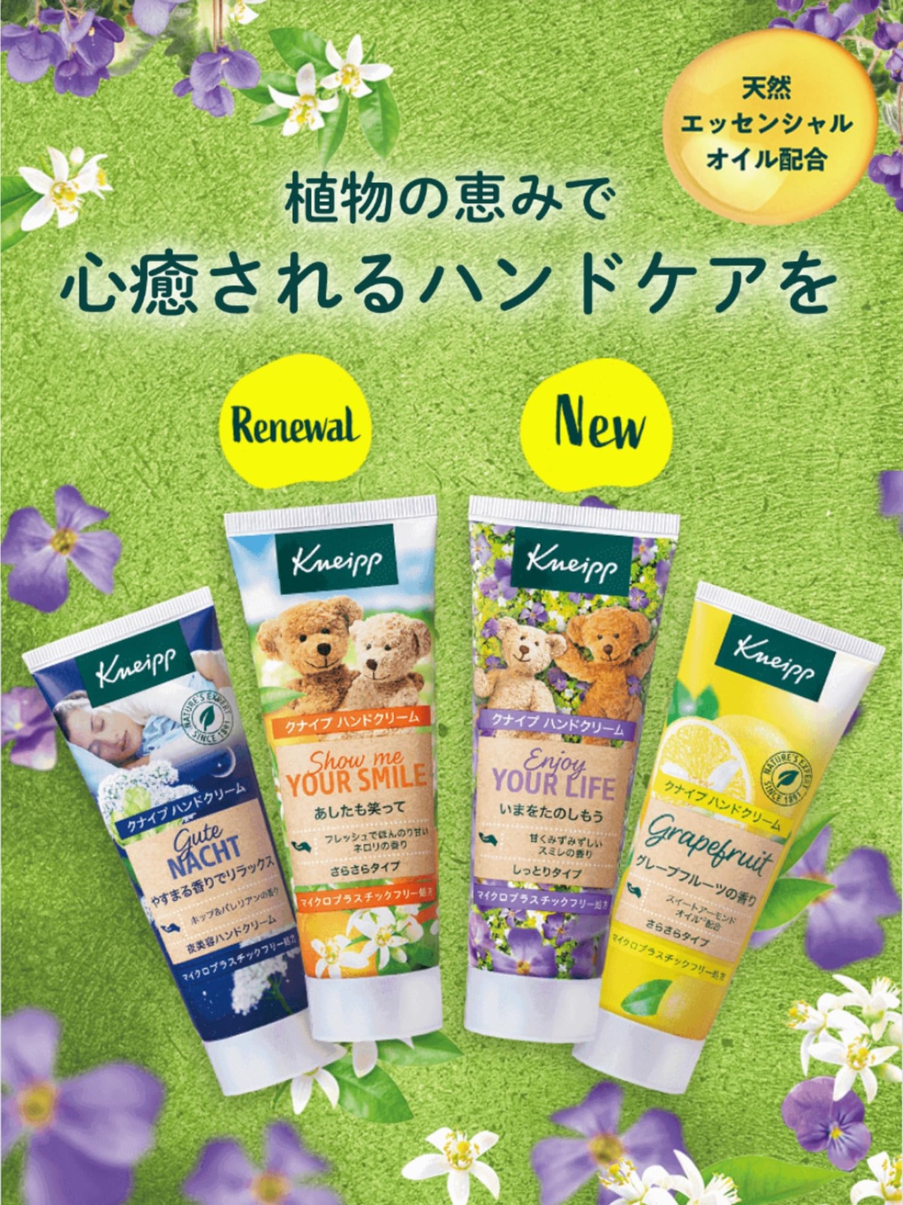 ● 晴れやかな気分になるようなフレッシュで甘いネロリの香り、のびが良くべたつかない潤い肌へ。晴れやかな気分にしてくれるような、フレッシュで甘いネロリの香り。メッセージ付きのかわいいパッケージでギフトにも適していますです。『Show me your smile/ あしたも笑って』天然美容保湿成分(アーモンドオイル、ダイズオイル)を配合。角層まで浸透し、みずみずしく潤った手肌へ。しっとり潤うのにさらりと伸びてべたつかない、さらさらタイプのハンドクリームです。環境に配慮したマイクロプラスチックフリー処方。● 使用上の注意肌に異常が生じていないかよく注意して使用し、肌に合わないとき(赤味、はれ、かゆみ、刺激、色抜け、(白斑)や黒ずみ等が使用中または使用後に直射日光にあたって現れた場合)継続使用すると症状を悪化させることがあるので使用を中止し、皮膚科専門医に相談ください。傷やはれもの、しっしん等、異常のある部位にはお使いにならないでください。● 原材料・成分水、グリセリン、アーモンド油、ミリスチン酸イソプロピル、セテアリルアルコール、酢酸トコフェロール、ジスターチリン酸Na、クエン酸ステアリン酸グリセリル、トリ(カプリル酸/カプリン酸)グリセリル、ビターオレンジ花油、ヒマワリ種子ロウ、ダイズ油、オレンジ果皮油、レモン果皮油、ジプテリクスオドラタ種子エキス、パンテノール、アルギニン、パルミチン酸アスコルビル、トコフェロール、カラギーナン、カプリル酸グリセリル、p―アニス酸、キサンタンガム、カプリリルグリコール、香料● 使用方法適量を手にとり、やさしくなじませてください。● ご注意(免責)>必ずお読みくださいお肌に異常が生じていないかよく注意して使用してください。お肌に合わないときは、ご使用をおやめください。メーカーの都合等により、商品規格・仕様(容量、パッケージ、原材料、原産国など)が変更される場合がございます。このため、実際にお届けする商品とサイト上の商品情報の表記が異なる場合がございますので、ご使用前には必ずお届けした商品の商品ラベルや注意書きをご確認ください。さらに詳細な商品情報が必要な場合は、メーカー等にお問い合わせください。