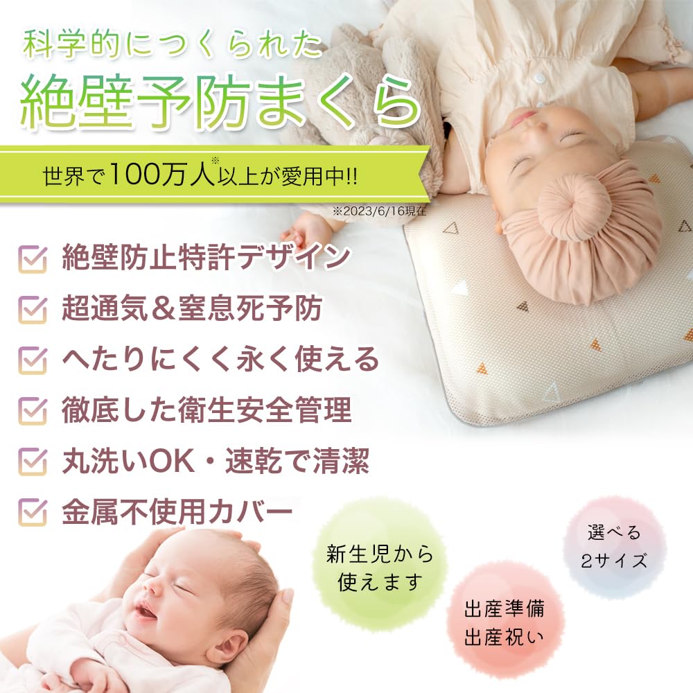 ジオピロー ベビー枕 赤ちゃん 枕 絶壁頭予防枕 ドーナツ枕 出産祝い 出産準備 新生児 絶壁防止枕 まくら 絶壁防止 ベビーまくら メッシュ (M トライアングルベージュ)