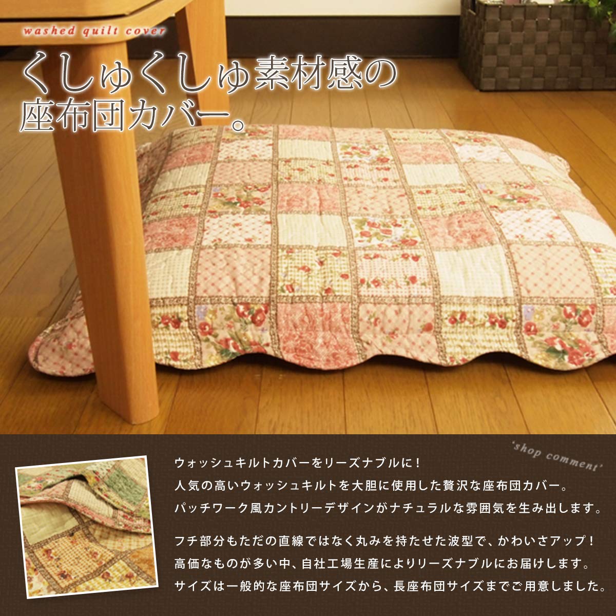 座布団カバー5枚組のお得なセットです。とっても肌ざわりのよい綿生地をウォッシュキルト(水洗い)加工した素材感の豊かなカバーです。ウォッシュキルト(水洗いキルト)とは、コットンの生地を製品になった状態で水洗い加工を施して、収縮させたものです。キルト自体に厚みを持たせ、立体感のある肌ざわりと綿の独特のシワ感を出しています。水洗いすることで吸水性も良くなり、いつもさらっとした感触で使用できます。