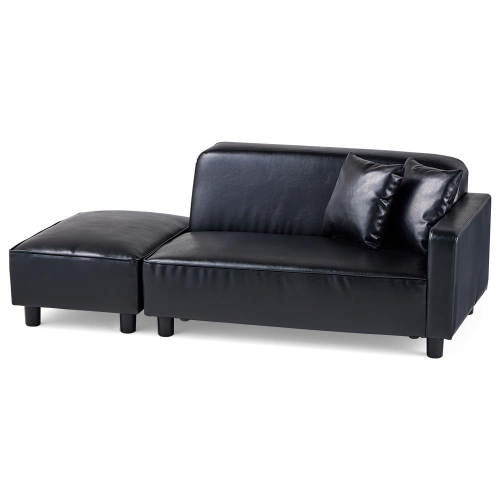 アイリスプラザ ソファ 2人掛け カウチソファ 幅110cm オットマン クッション2個付き かんたん組立 レイアウト 自由 1人用にも レザー風 ブラック