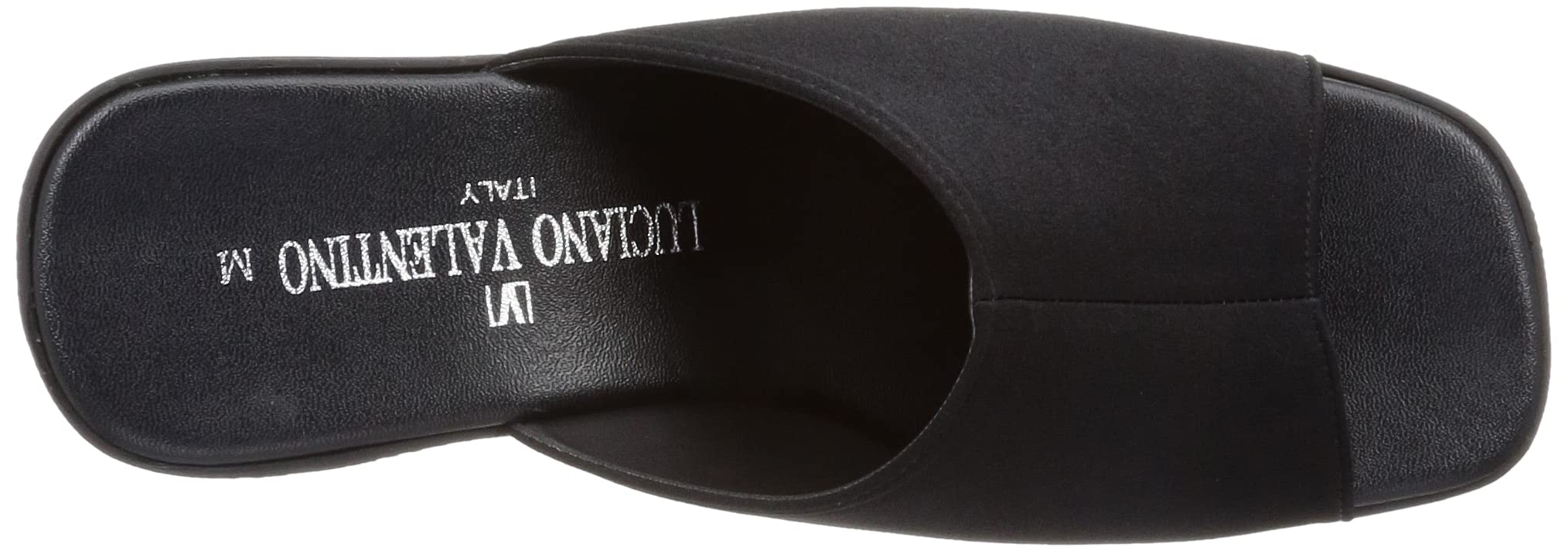 [ルチアーノ バレンチノ] 日本製 オフィスサンダル 6.5cmヒール 履きやすい 黒 ドークレーサテン生地 レディース