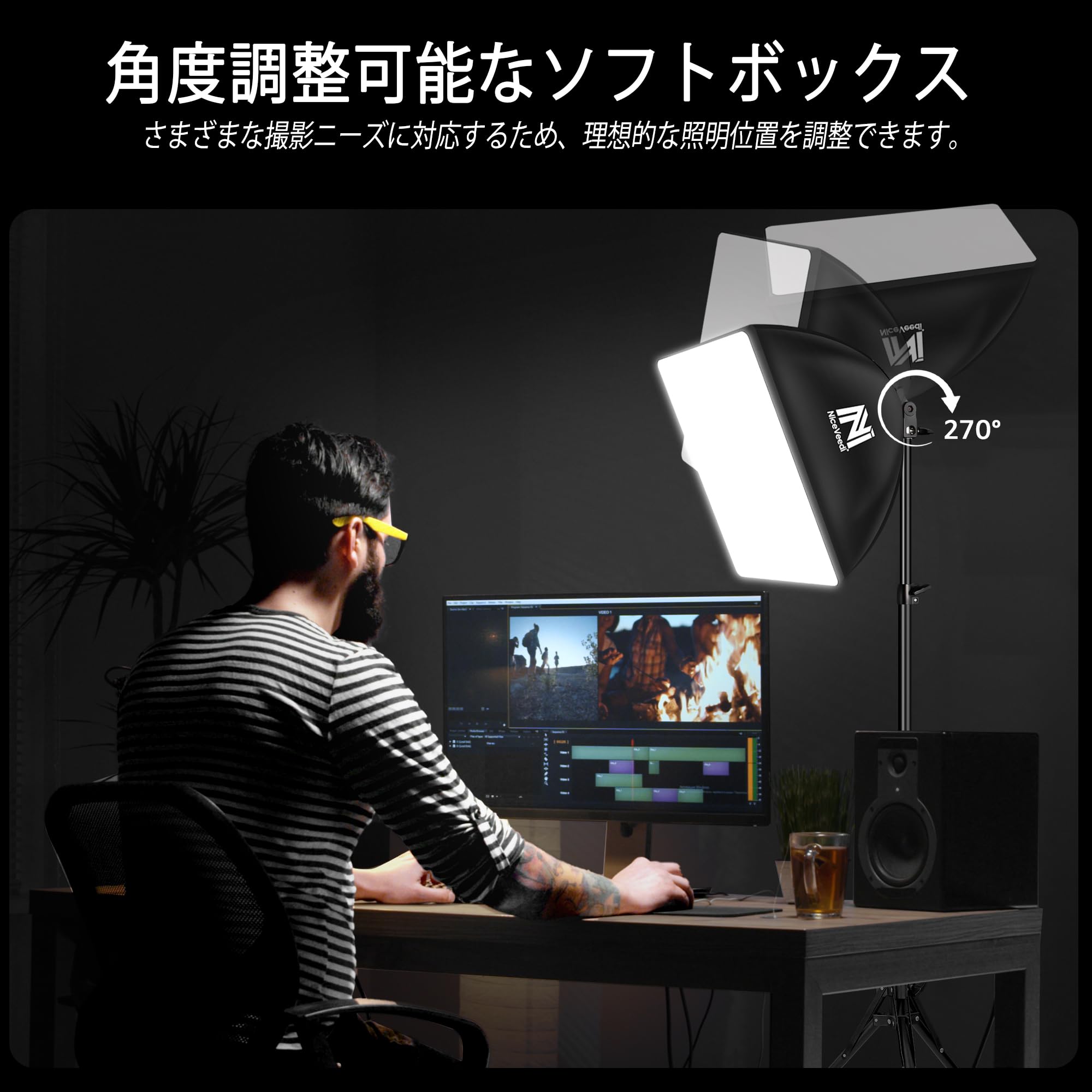 【優れた明るさ】このソフトボックス照明キットは、50W CFL電球と同等の50W LED電球を搭載しており、柔らかな照明効果を提供しますが、明るさを損なうことはありません。作業時に目を保護するため、追加の照明が必要な場合でも安心です。2つのセットを併用すると、照明環境を柔軟に調整し、鮮やかな光環境を作り出すことができます。また、16インチ x 16インチの柔軟なサイズは、バッグに収納してどこでも便利に使用できます。