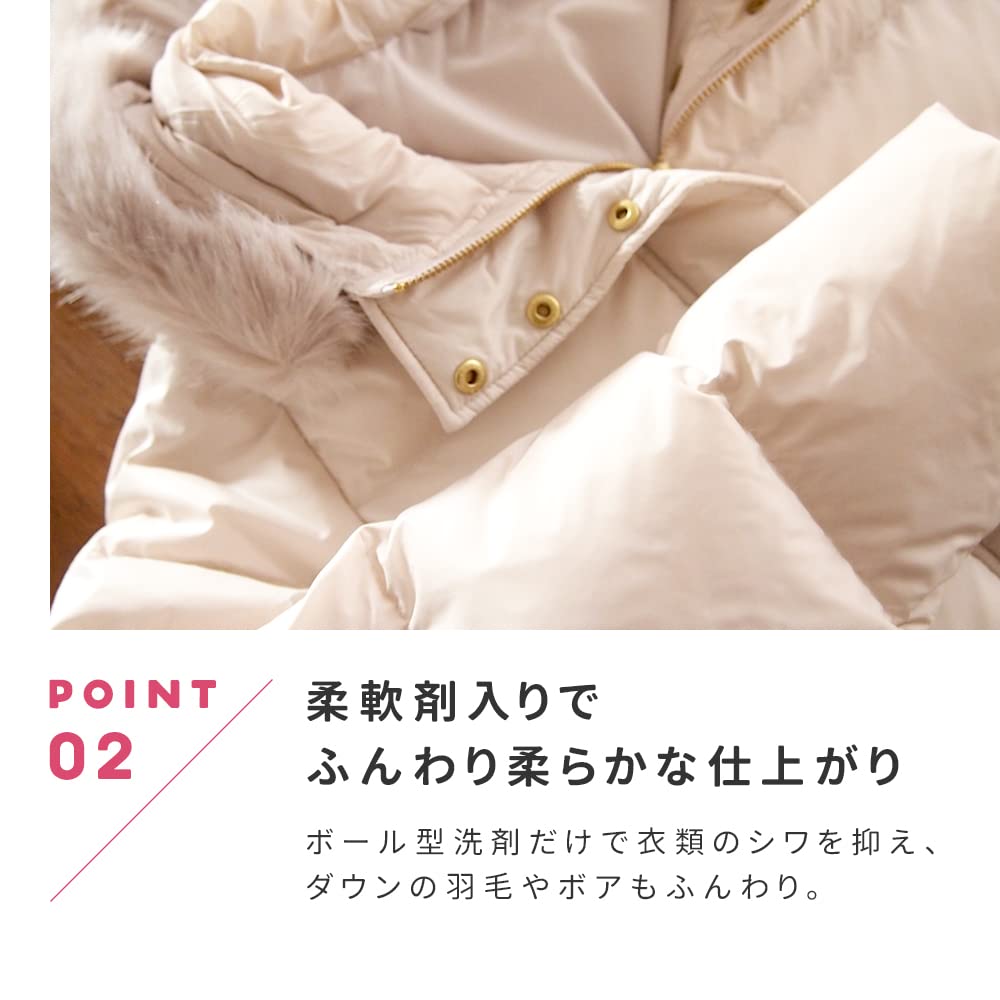 【柔軟剤入りでふんわり柔らかな仕上がり】柔軟剤入りだから、ボール型洗剤だけで衣類のシワを抑え、ふんわり仕上げます。また、抗菌・防臭効果でいやなニオイを抑えてくれるので、雨の日の部屋干しも安心です。※全ての菌を抗菌するわけではありません。