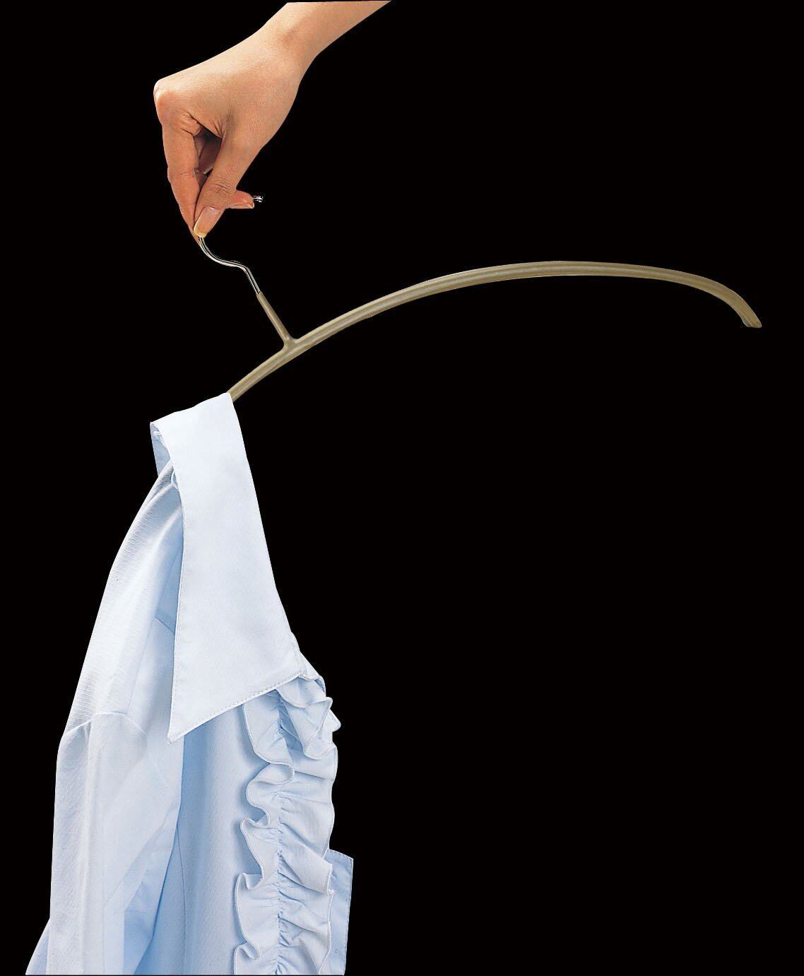 ●緩やかなカーブは衣類の肩部分を引っ張ることなく掛けられるので、肩部分に「角」のような跡も付きにくく収納できる