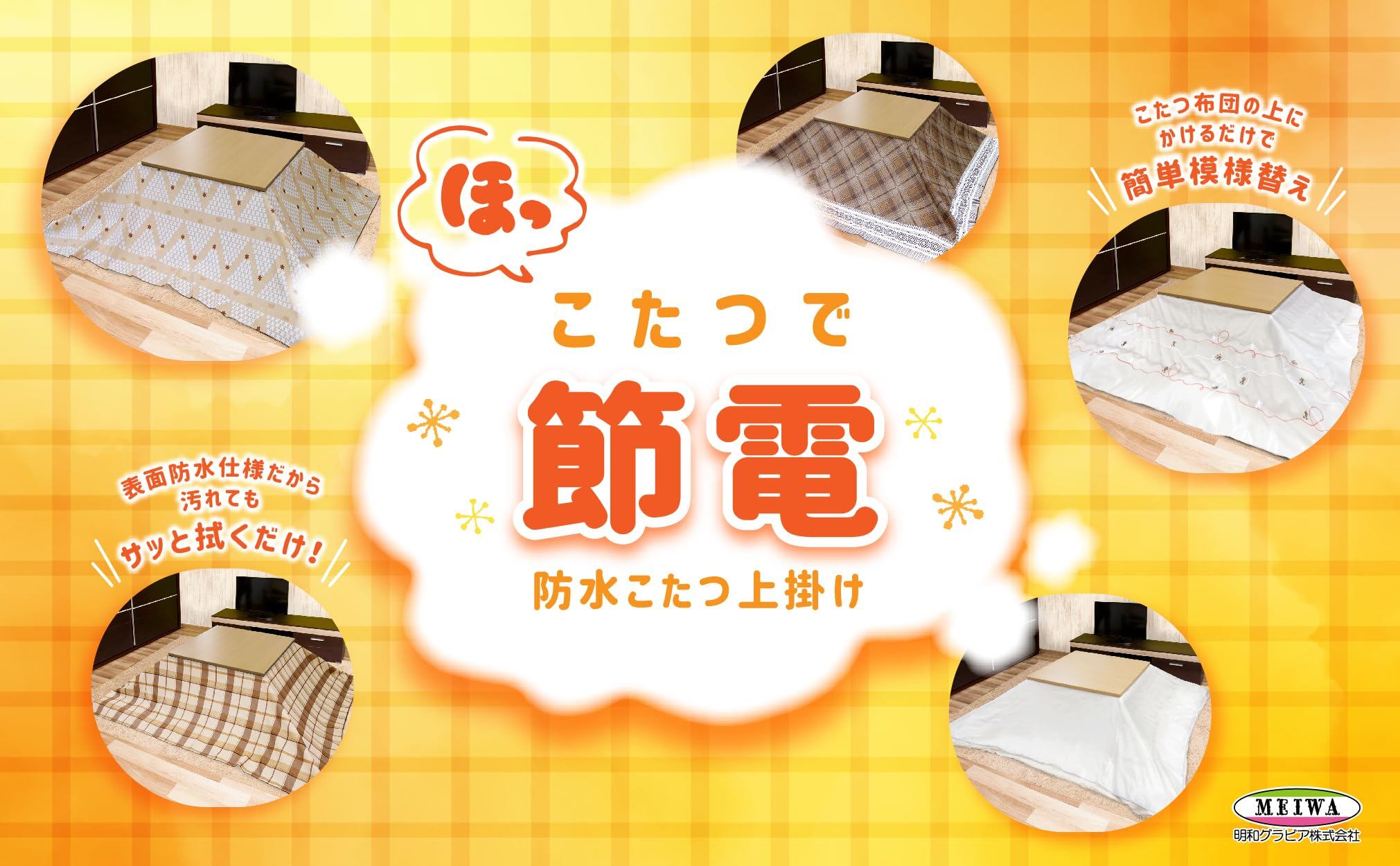 ■お手入れしやすい防水仕様 PVC素材を使用しているので、汚れてもサッと拭くだけでOKです。食べこぼしや飲み物をこぼしても染み込まないので、小さなお子様やペットがいるご家庭におすすめ!こたつ布団が汚れるのを防ぐことができます。(洗濯機は使用できません)