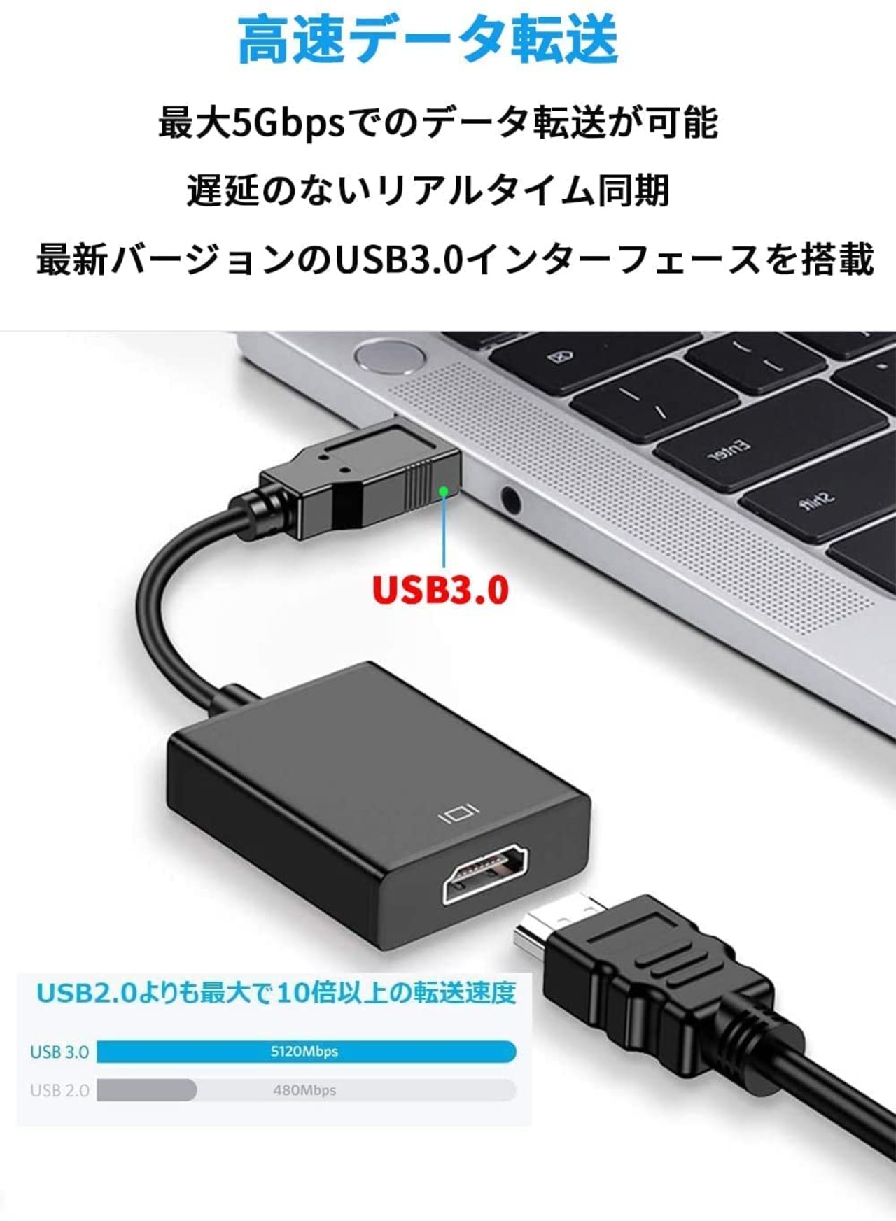 USB3 HDMI 変換 アダプタ:usb hdmi 変換ケーブルはUSBポートからHDMI機能を増設する変換アダプターです、 USBポート付きのPCとHDMIポート付きのプロジェクター、モニター、テレビなどを接続して、画面と音声を同期で大きくすることができます。ドライバーが自動的に出てこない場合は、一応アンチワイルソフトウェアをOFFにして見てください。