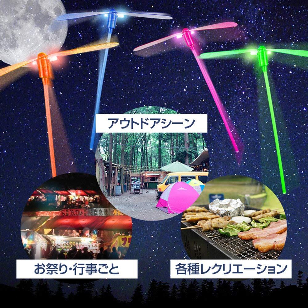 光るプラトンボ お得な5本セット プラスチック製竹とんぼ LEDライト付き お祭り/縁日/キャンプ/アウトドア/各種リクリエーション等にも LEDプラコプター 5本色ランダム出荷