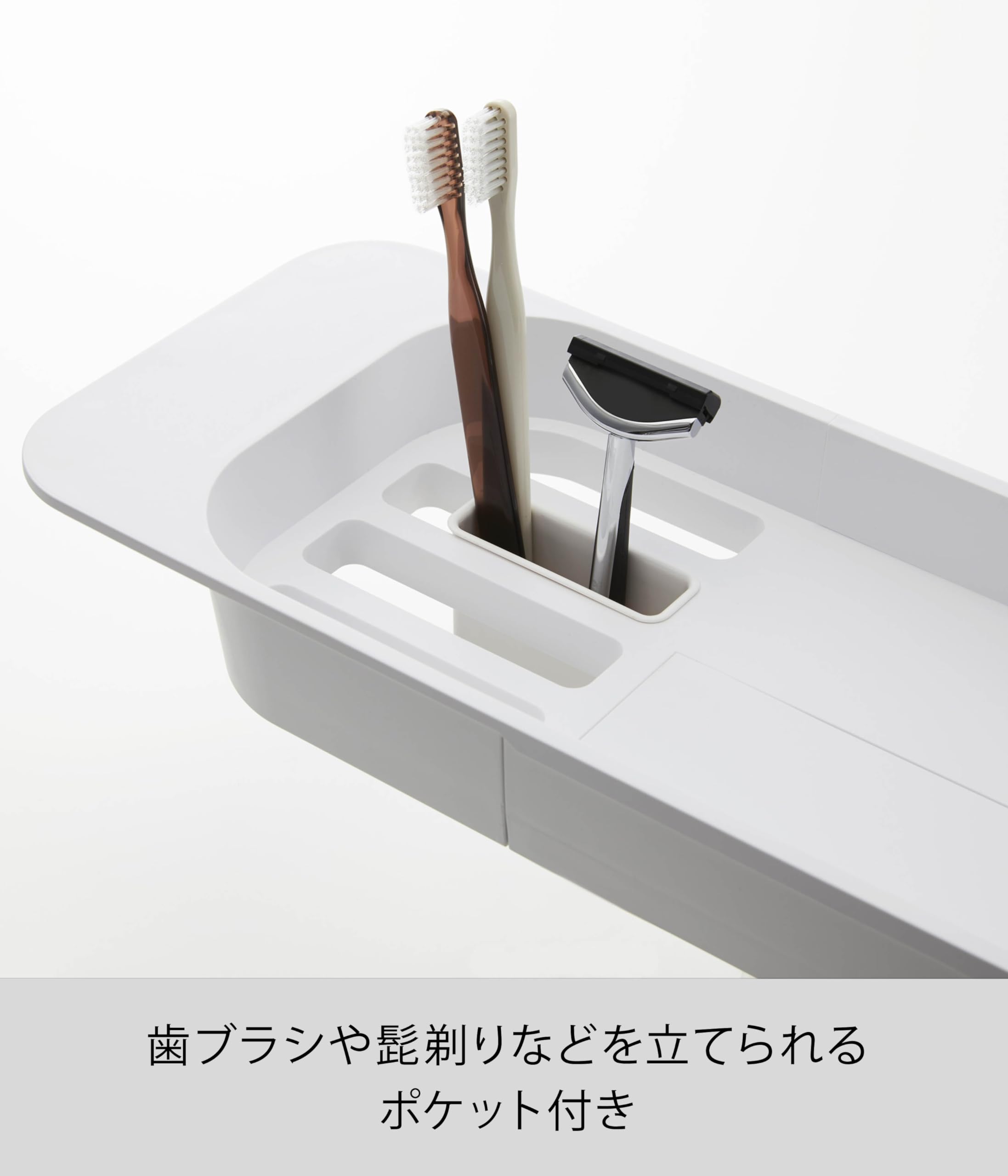 山崎実業(Yamazaki) 伸縮 バスタブ トレー ホワイト 約W57.5-75XD15.5XH4.5cm タワー 浴室用ラック バスラック 3546