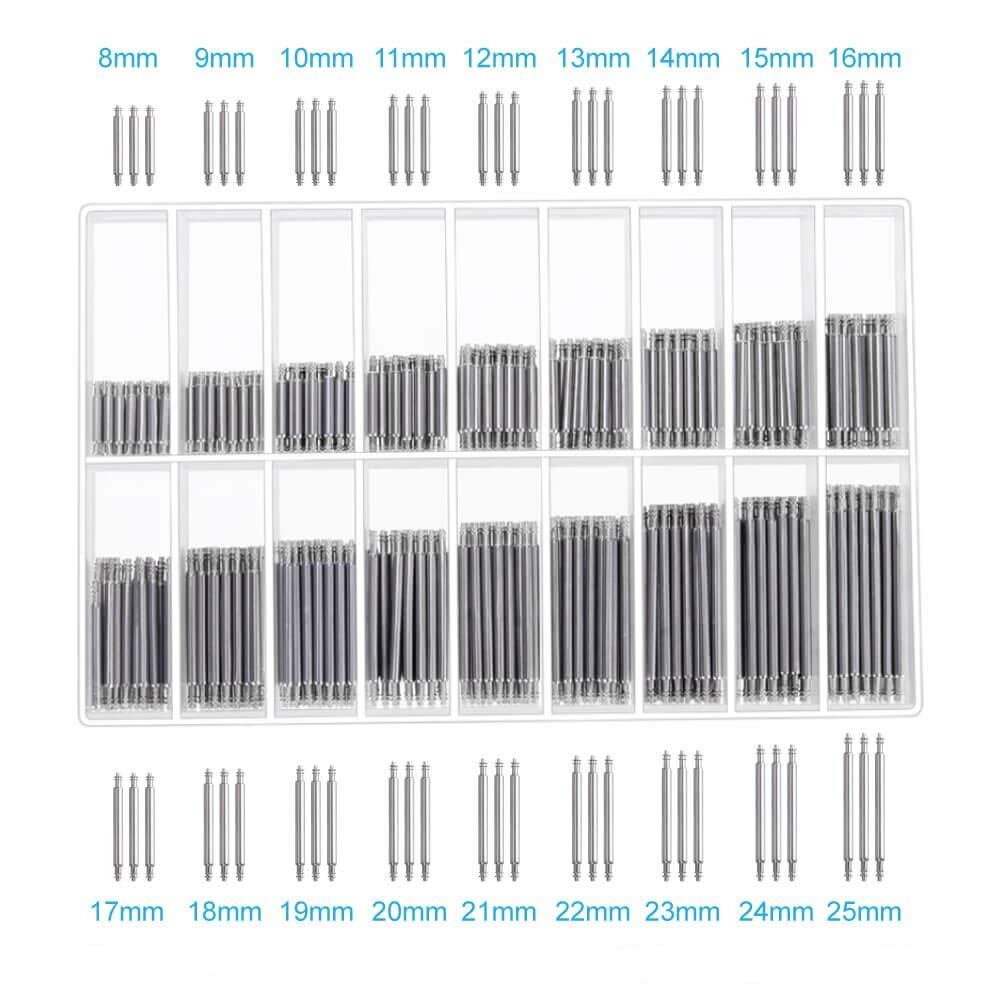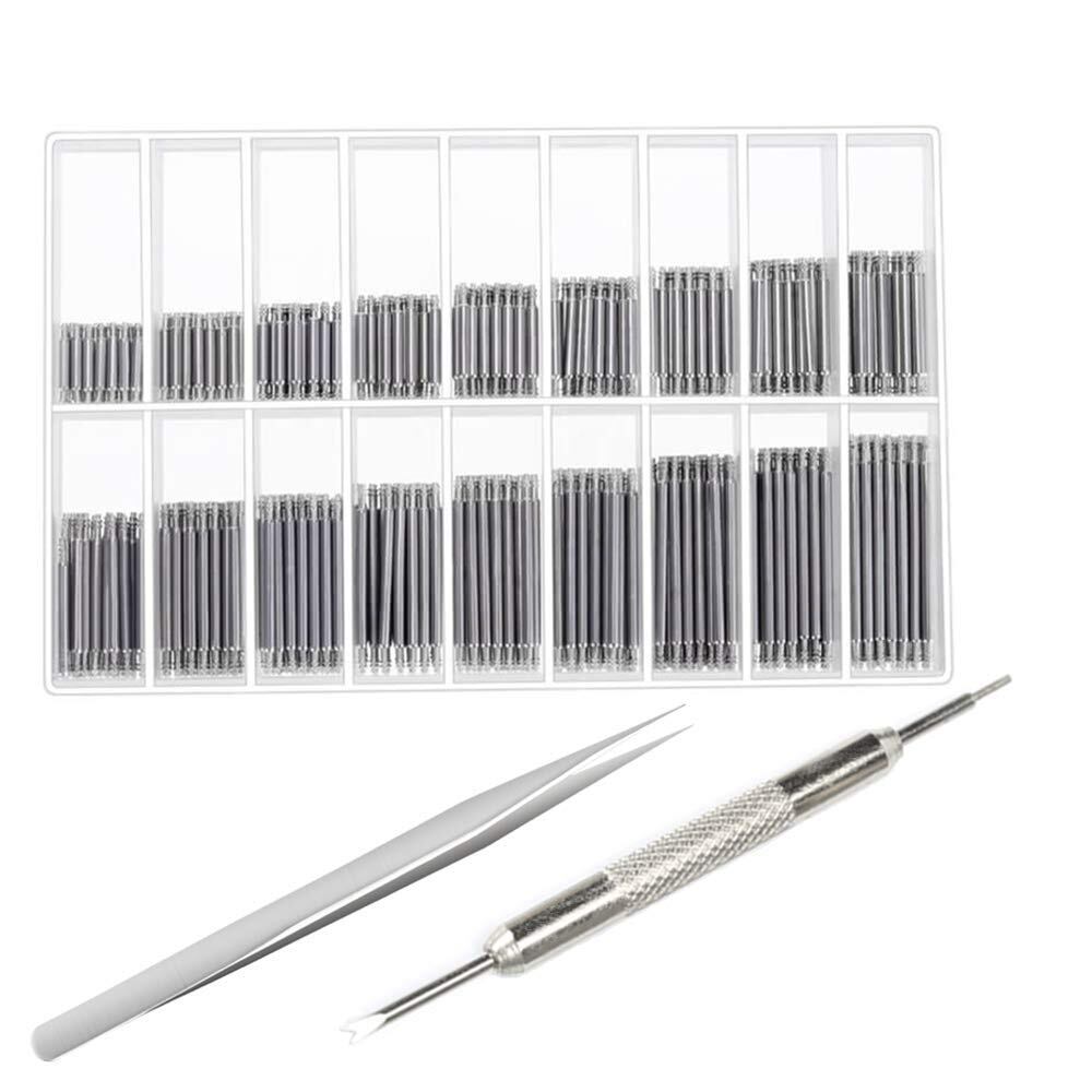 腕時計バネ棒 腕時計ベルトピン ウォッチスプリングバー 腕時計 ストラップリンクピン スプリングバーピンリムーバー 腕時計リンクピン 時計バネ棒 交換 修理キット 取り外し棒付き 腕時計工具 腕時計ベルト用ピン ステンレス鋼 18サイズ(8-25mm)