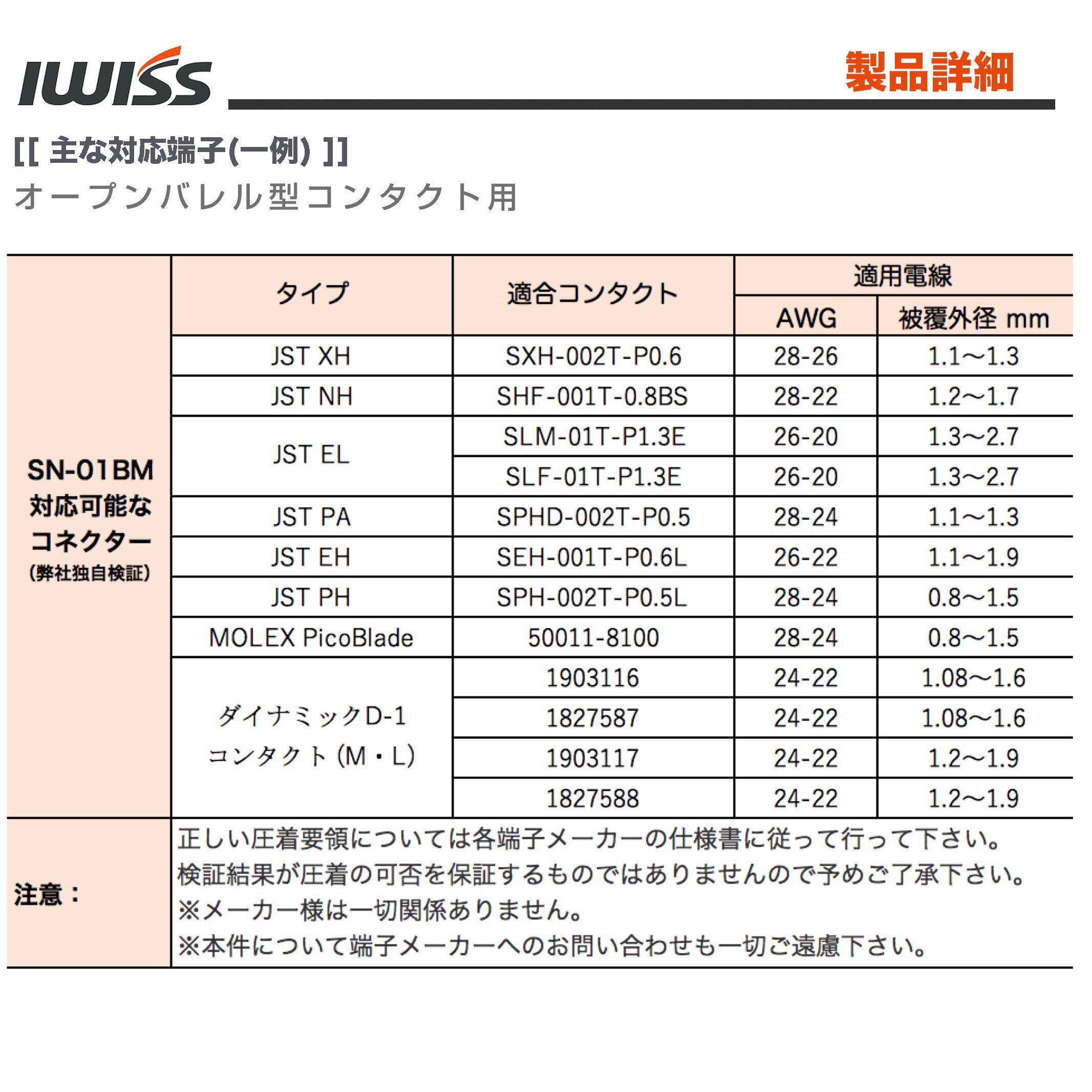 アイウィス(IWISS) 精密同時圧着ペンチ ラチェット式 オープンバレル端子 極小端子 XH PHコネクタ用 SN-01BM