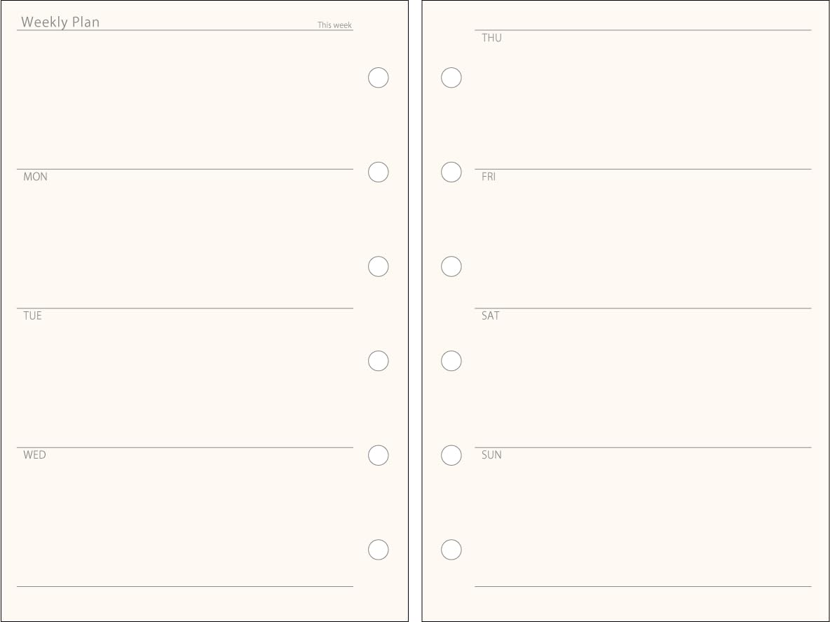 はじめたいタイミングで開始できる日付無しタイプのミニ6穴サイズのウィークリースケジュール